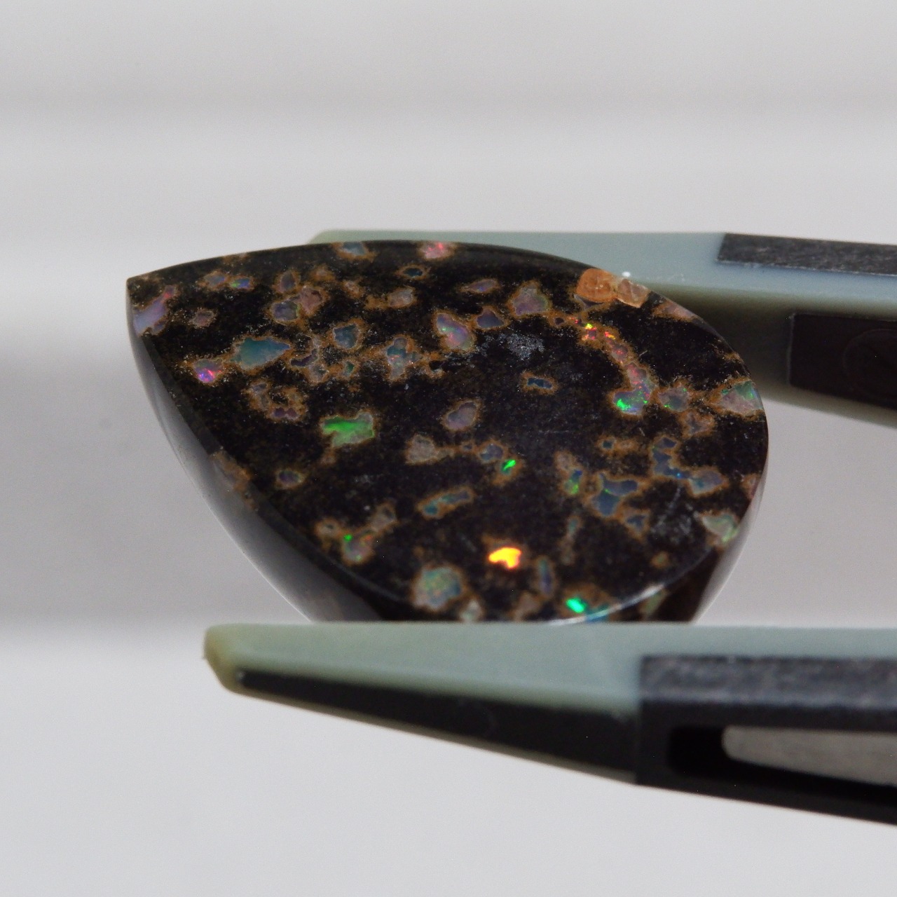 母岩である玄武岩の美しい艶、遊色どちらもお楽しみただけるレオパードオパールです。