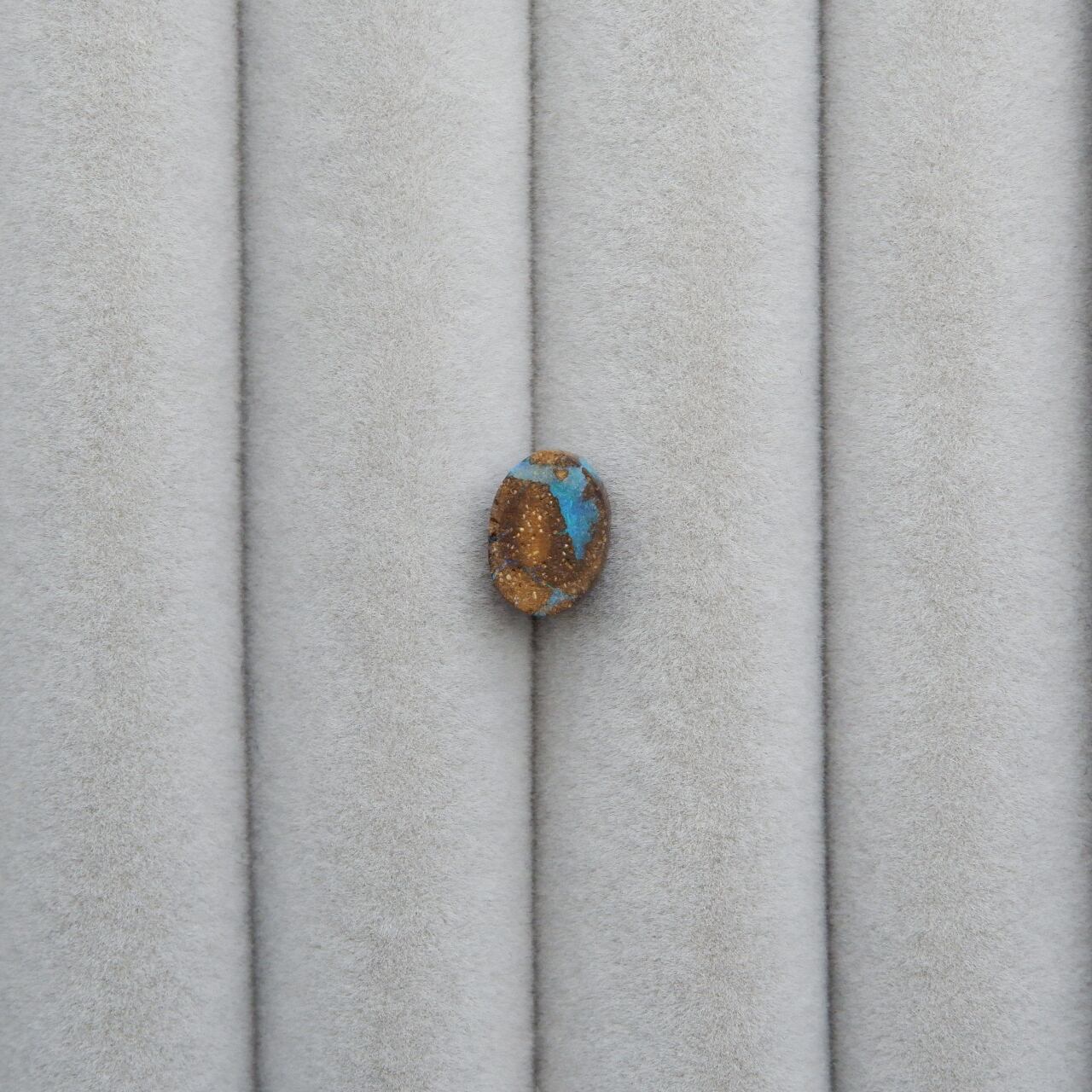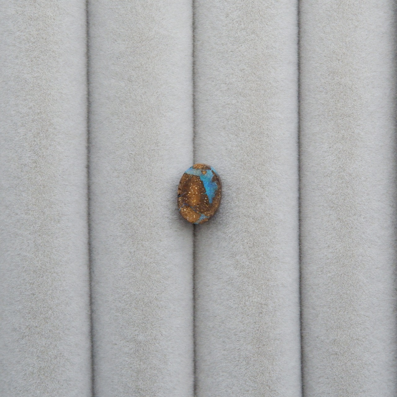 母岩である鉄鉱石、砂岩とともに研磨されたオパールです。
