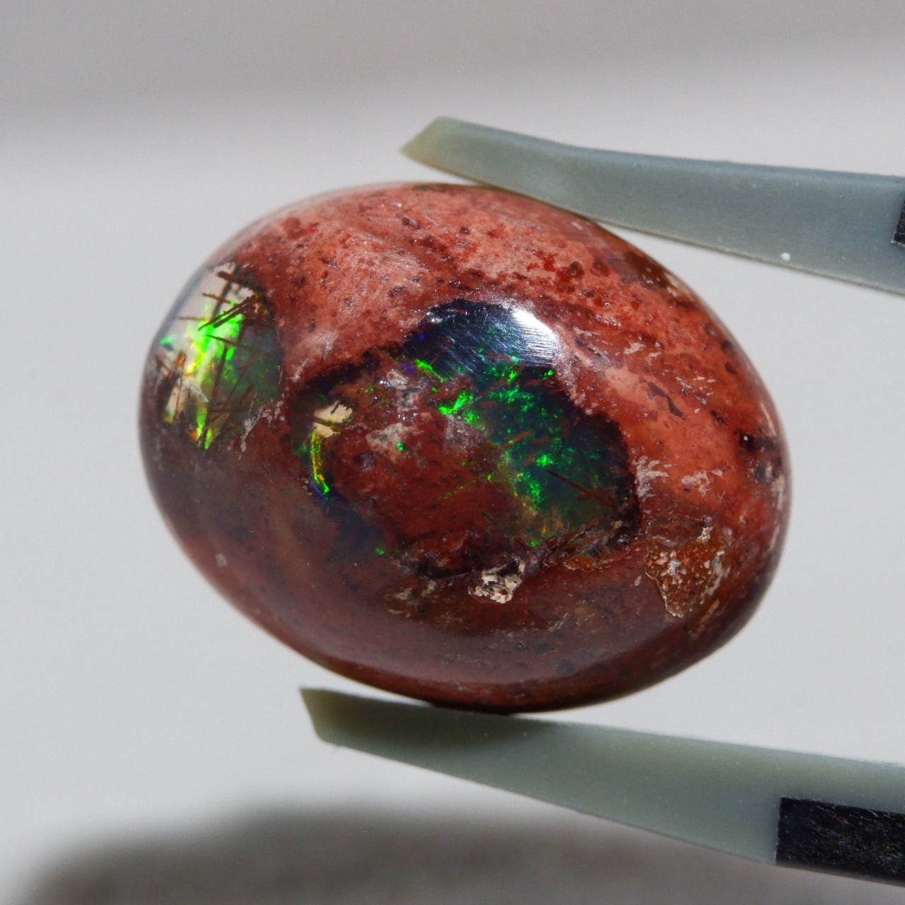 周囲の母岩とともに研磨されたオパールで、恐竜の卵のようにも見える可愛らしい印象を与えるものが多くあります。