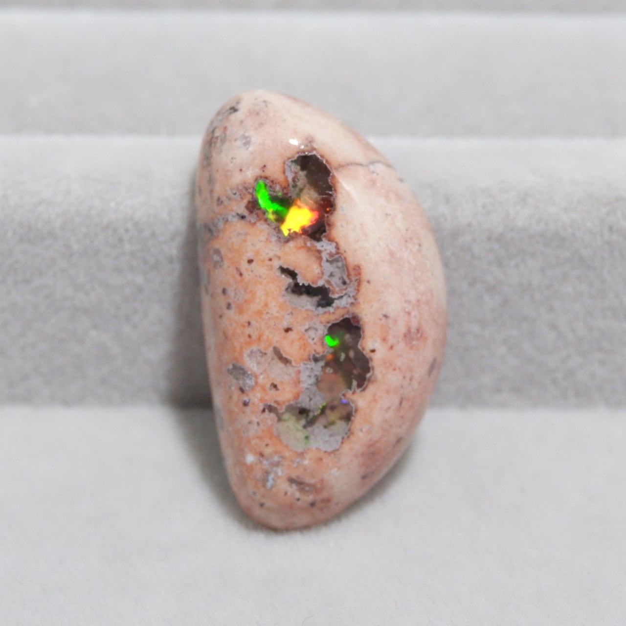 周囲の母岩とともに研磨されたオパールで、恐竜の卵のようにも見える可愛らしい印象を与えるものが多くあります。