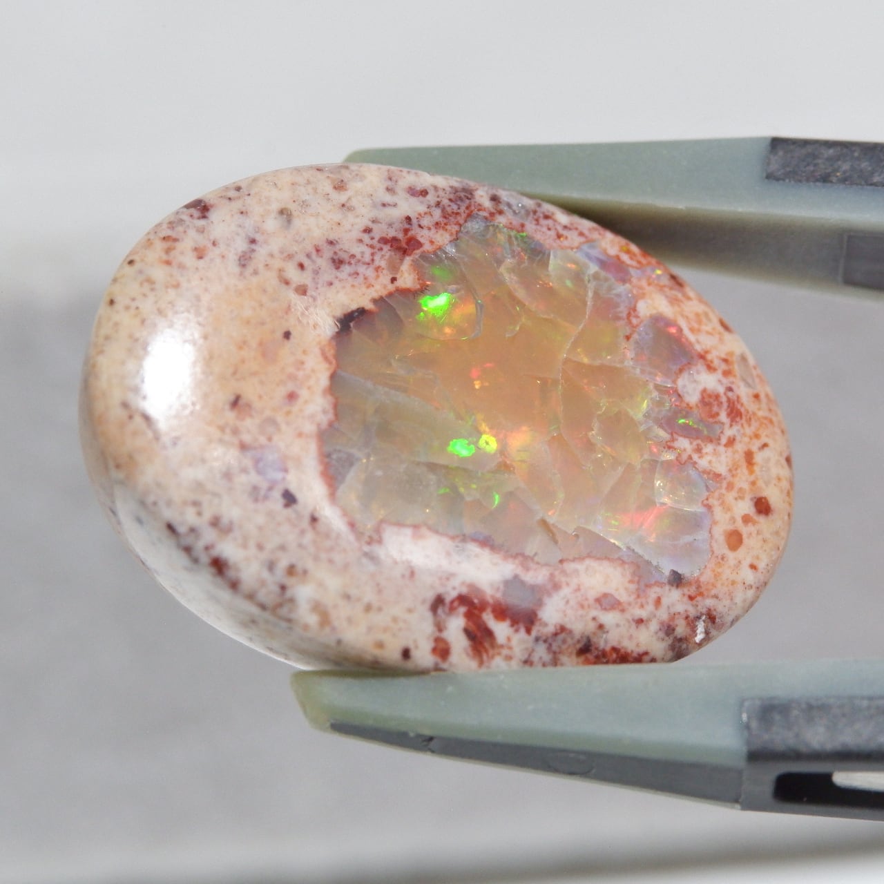 周囲の母岩とともに研磨されたオパールで、恐竜の卵のようにも見える可愛らしい印象を与えるものが多くあります。