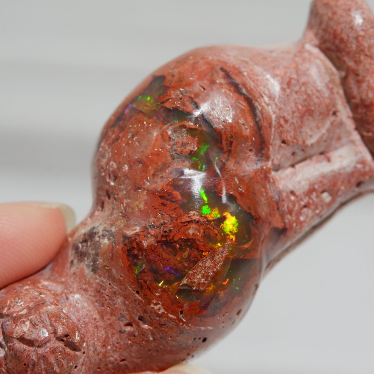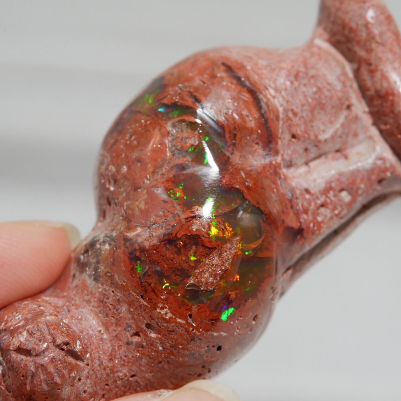 胸に美しいオパールが入ったネコのカンテラオパール彫刻です。