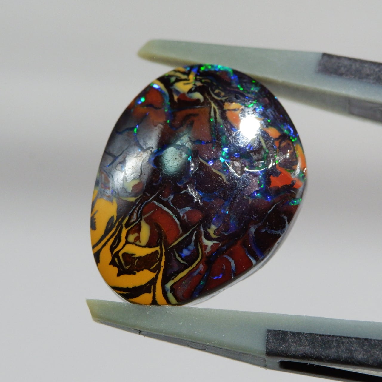 ボルダーオパールの一種で、主に鉄鉱石、砂岩、オパールからなる入り組んだ模様が絵画のようにも見える芸術的なオパールです。