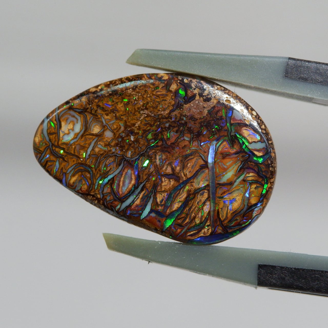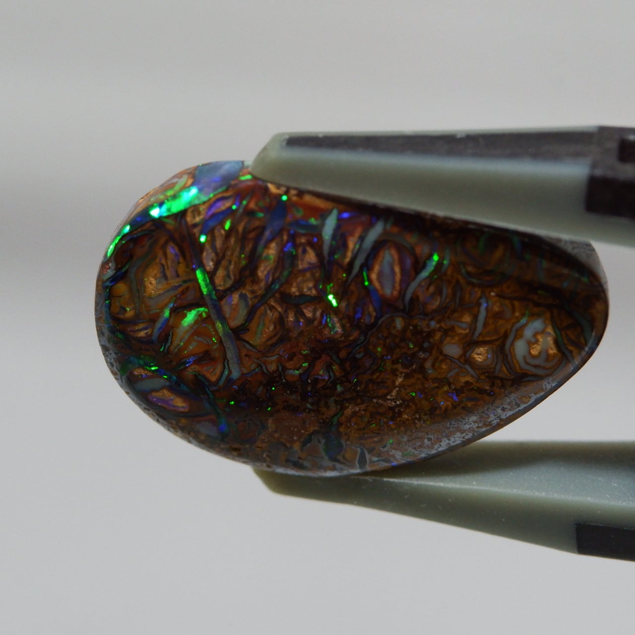 ボルダーオパールの一種で、主に鉄鉱石、砂岩、オパールからなる入り組んだ模様が絵画のようにも見える芸術的なオパールです。