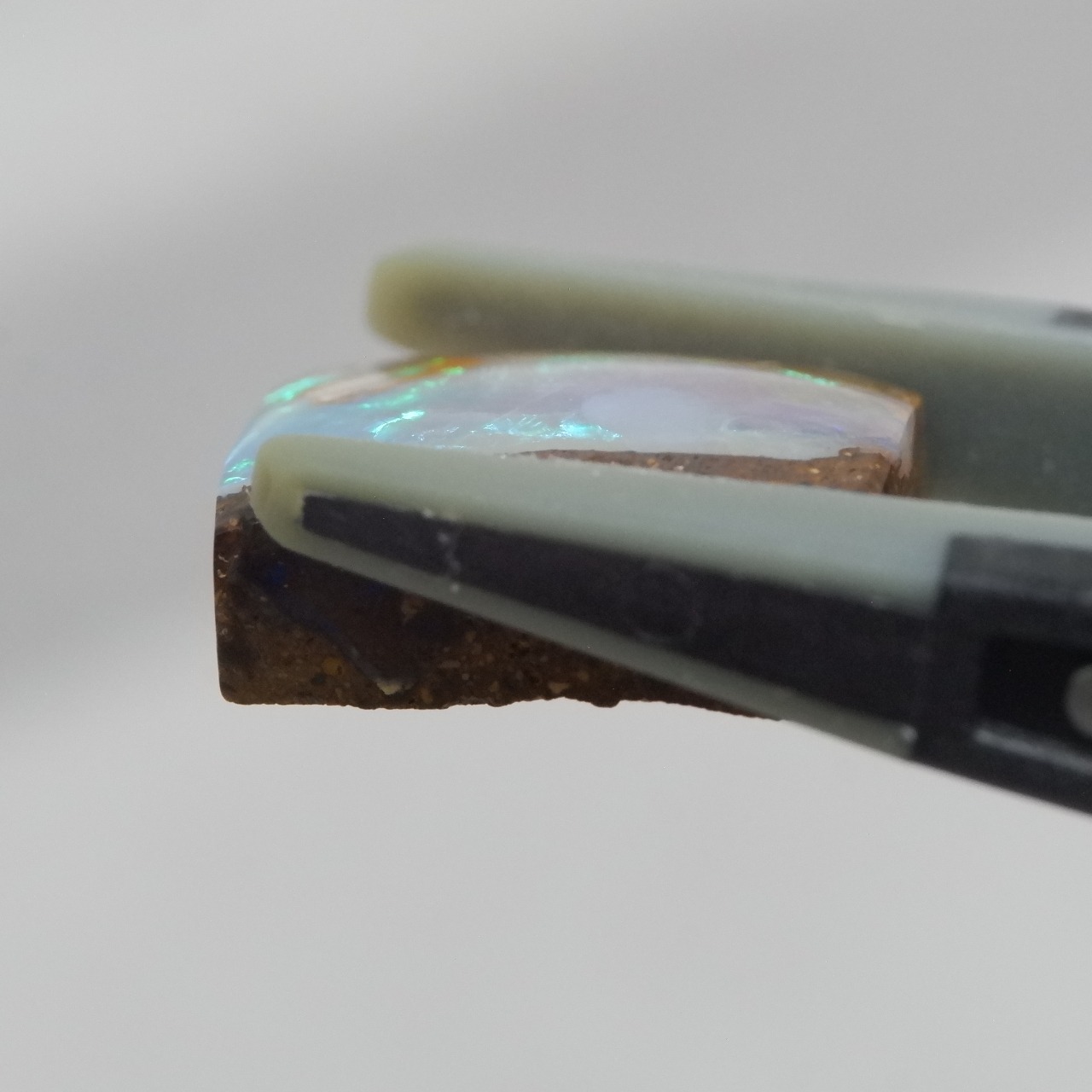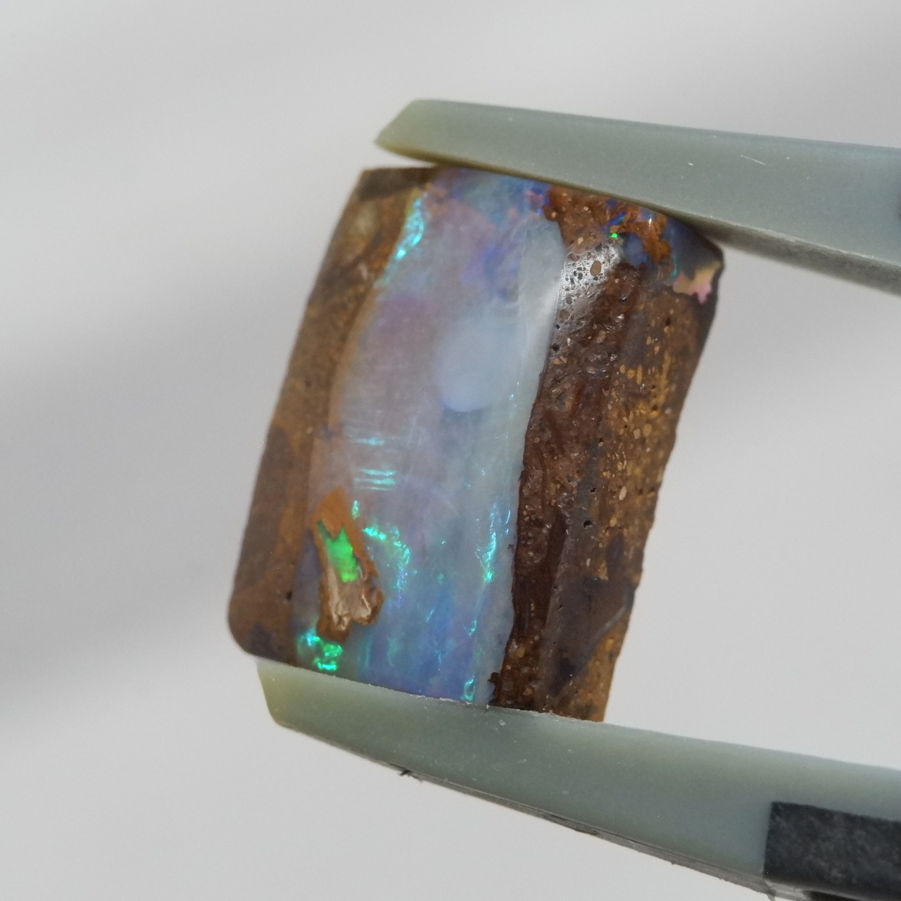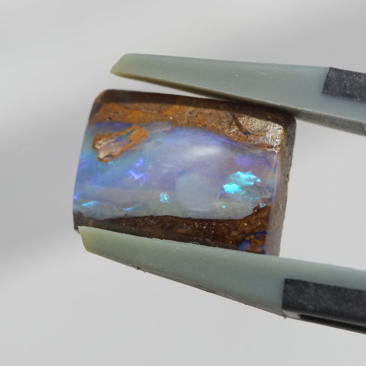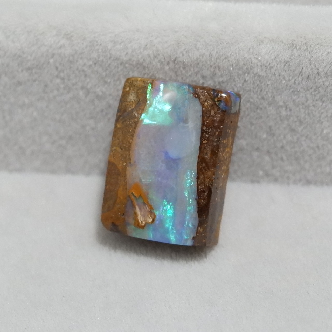 ライトブルー、グリーンの遊色が美しいウッドオパールです。