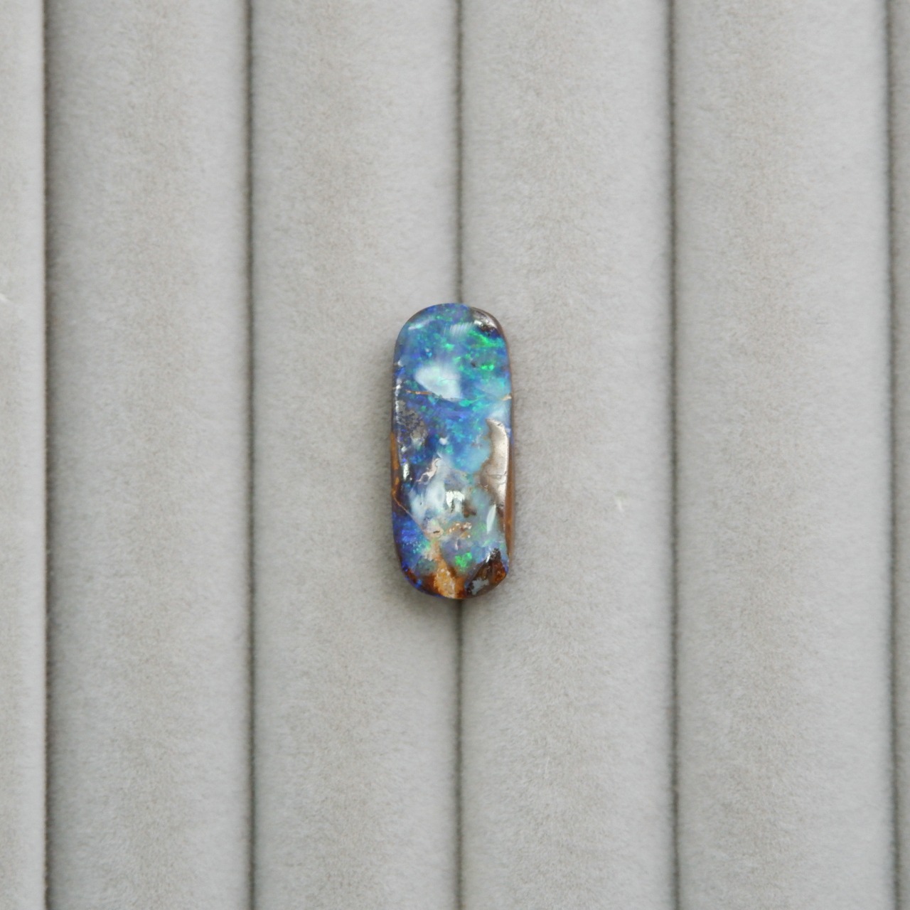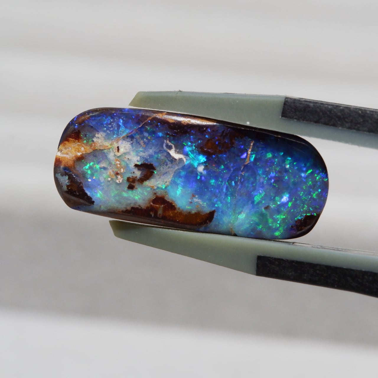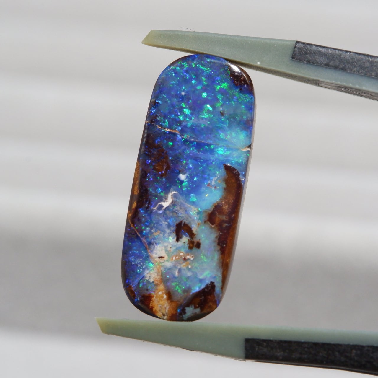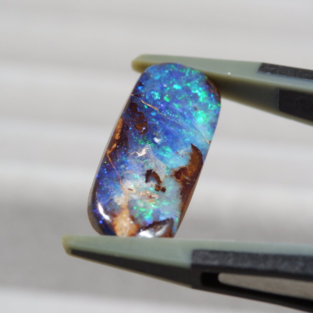 海のようにも見えるブルーとホワイトのグラデーションが美しいボルダーオパールです。