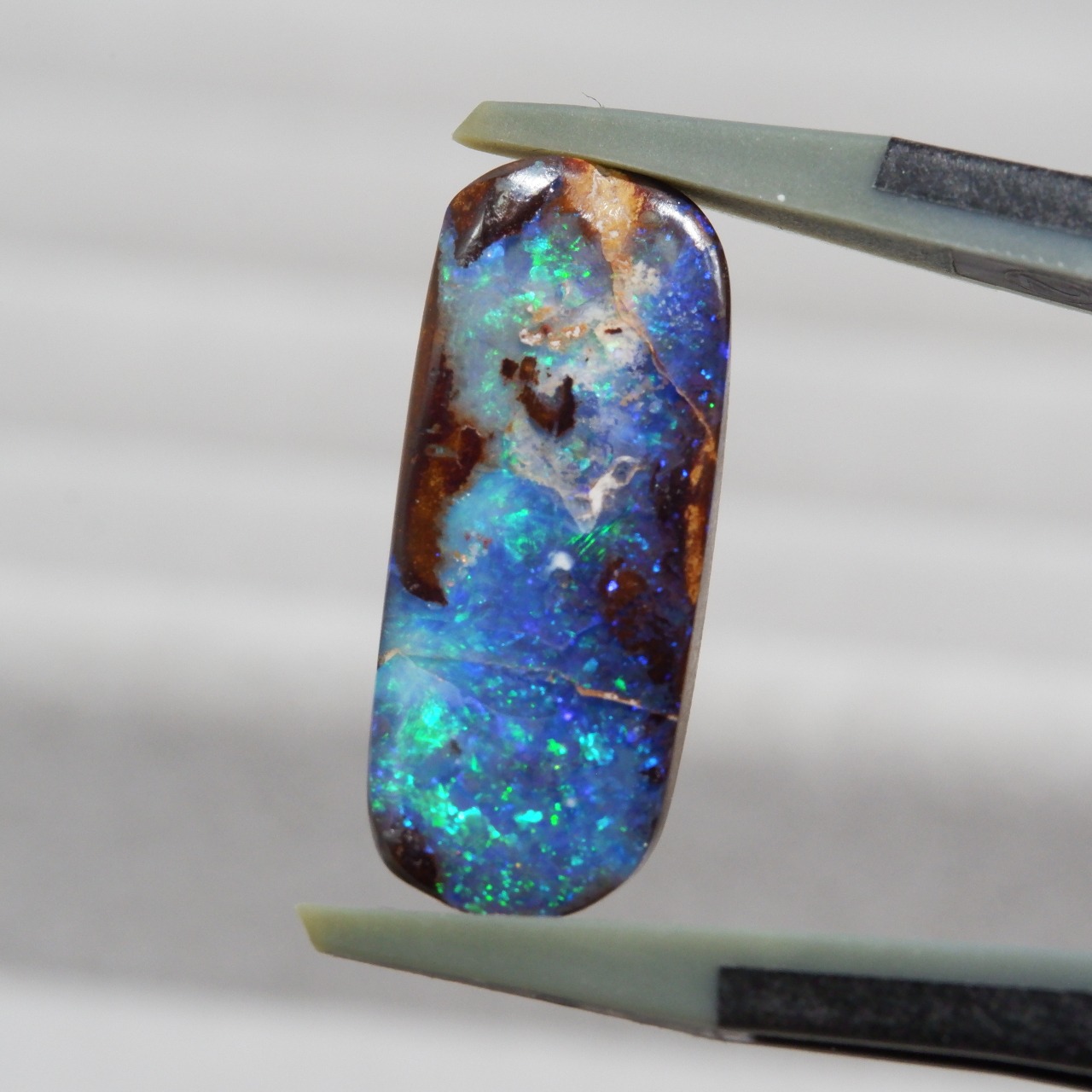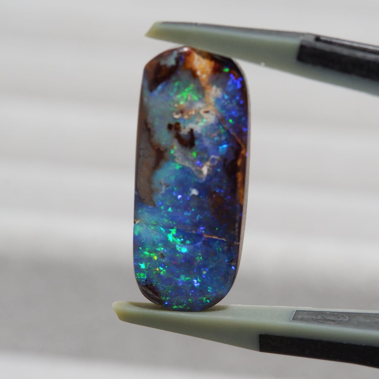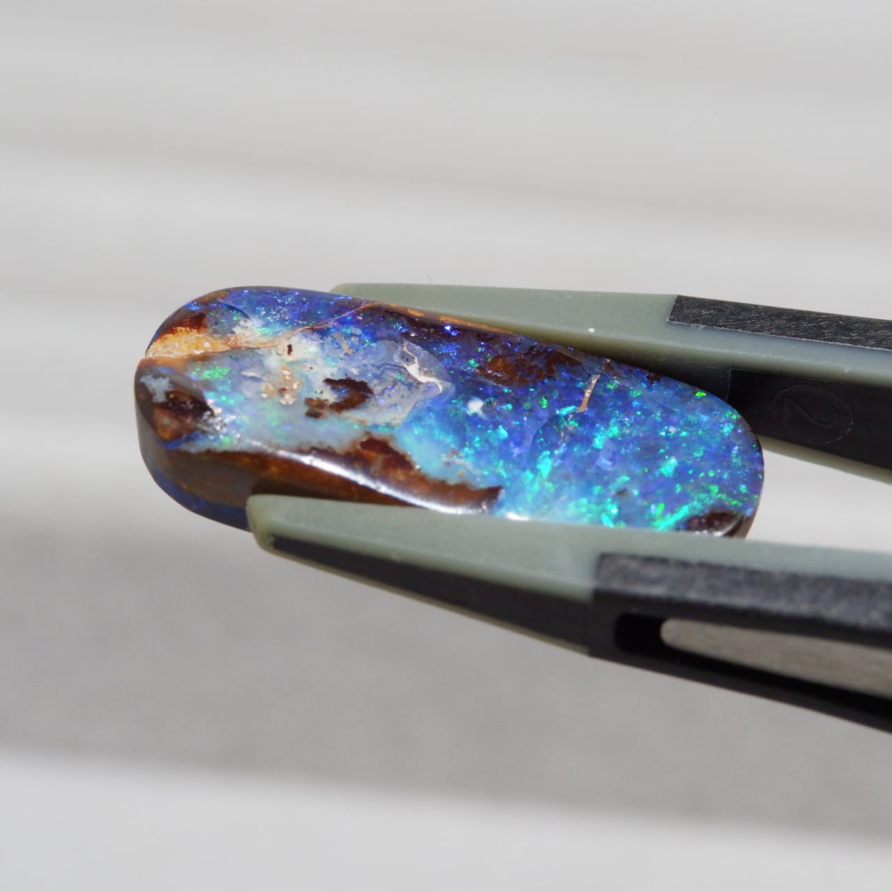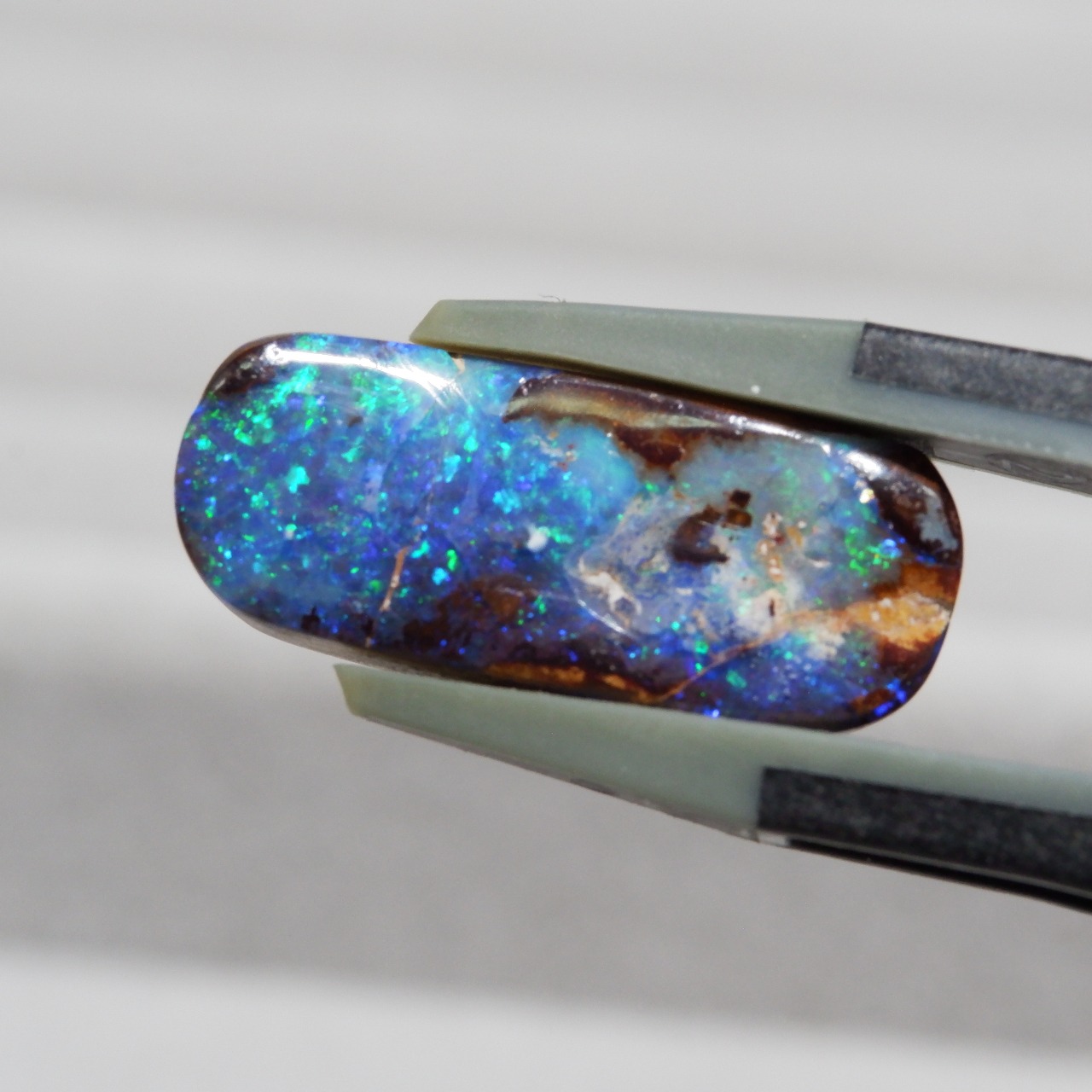 海のようにも見えるブルーとホワイトのグラデーションが美しいボルダーオパールです。