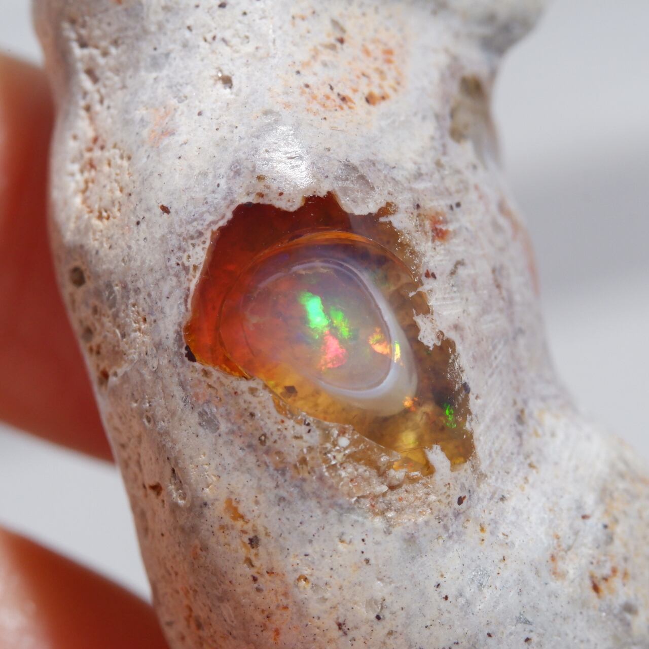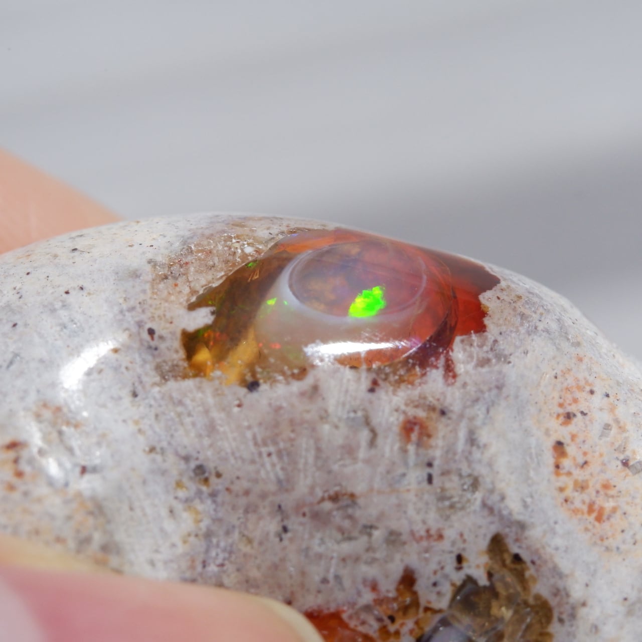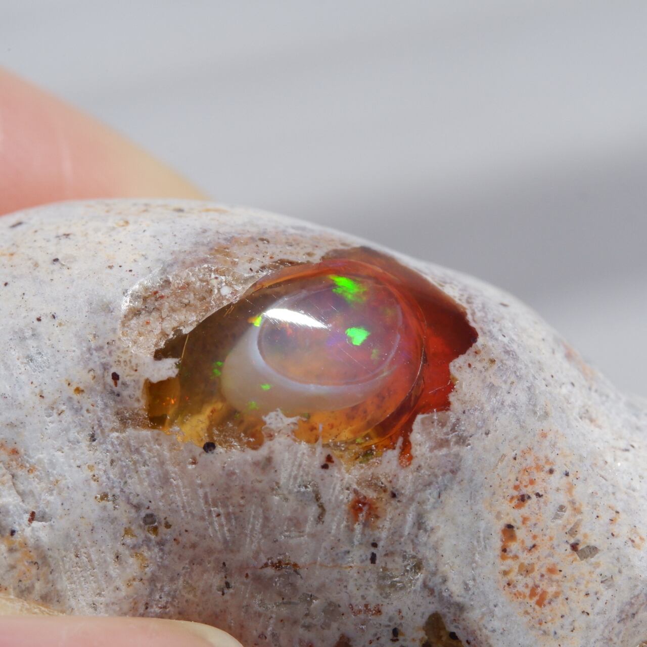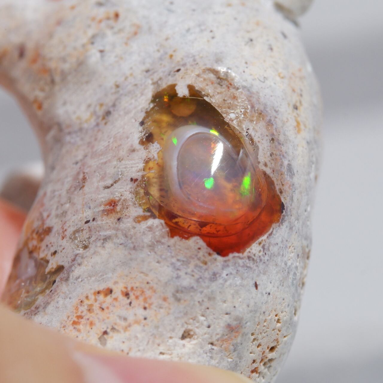 周囲の母岩とともに研磨されたオパールで、恐竜の卵のようにも見える可愛らしい印象を与えるものが多くあります。