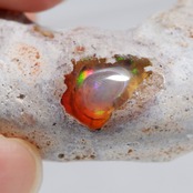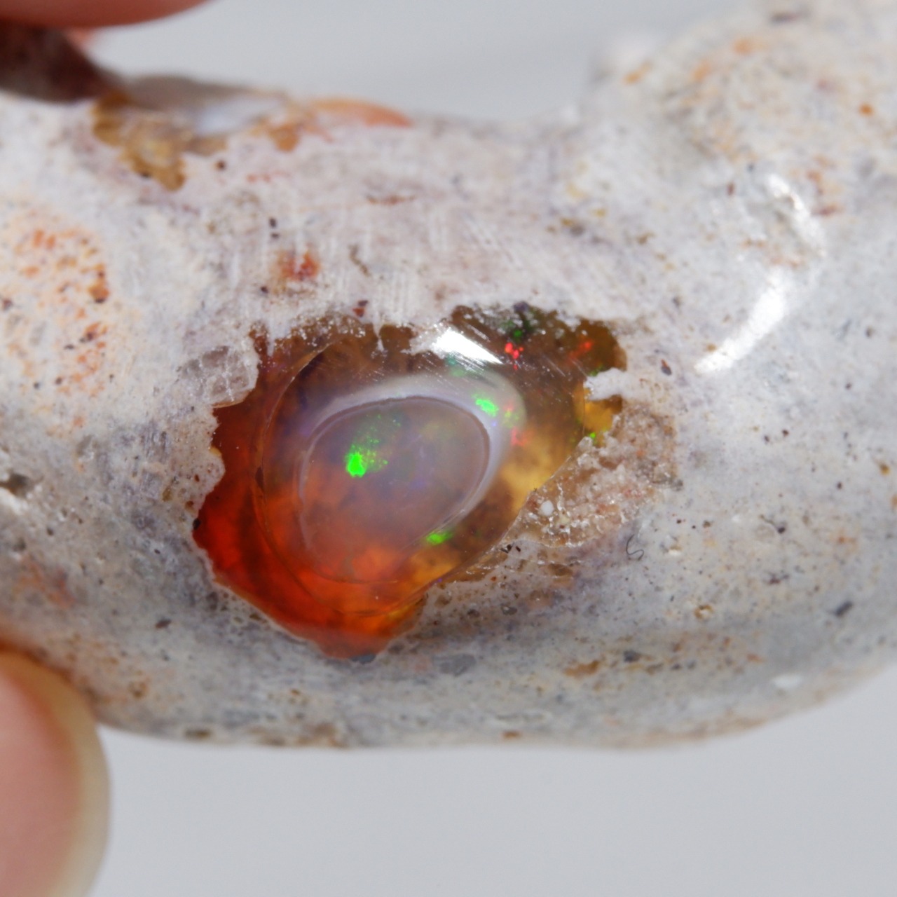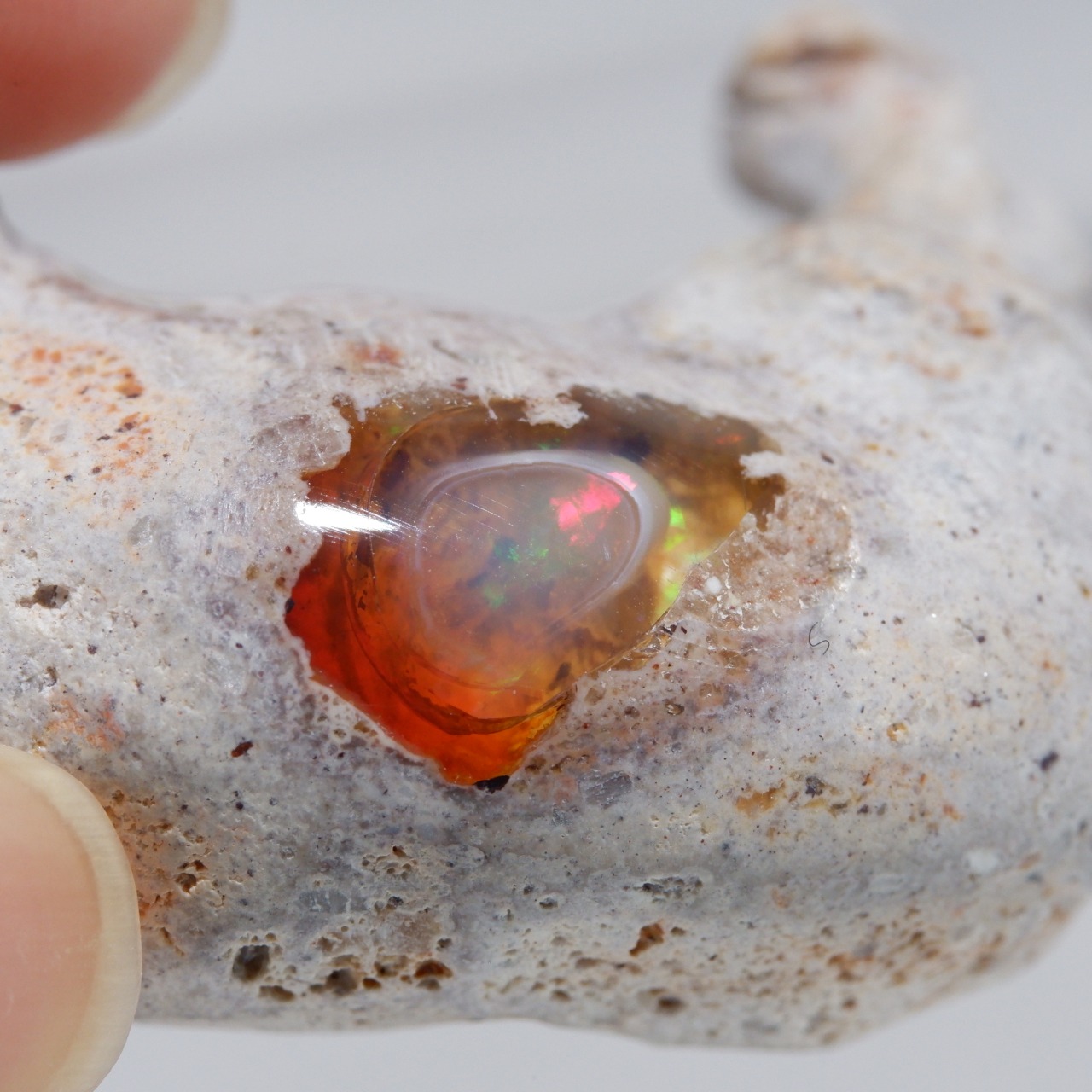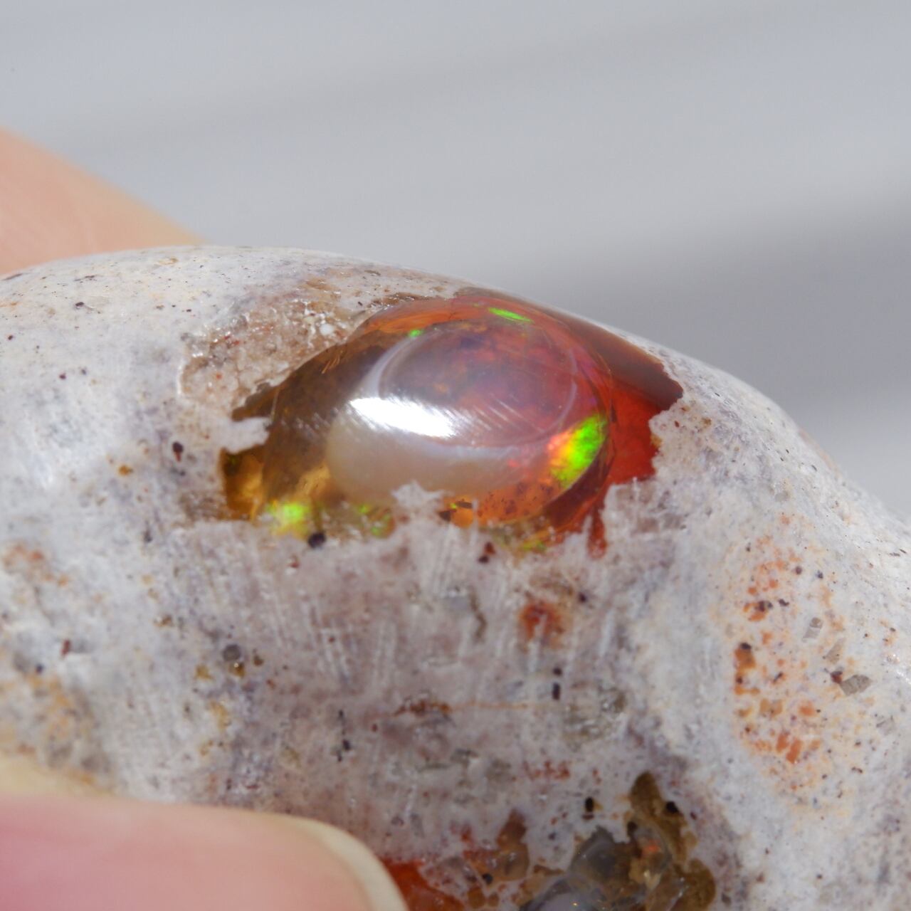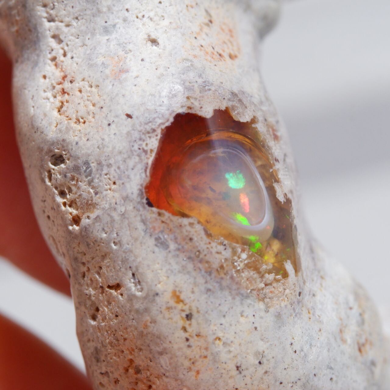 周囲の母岩とともに研磨されたオパールで、恐竜の卵のようにも見える可愛らしい印象を与えるものが多くあります。