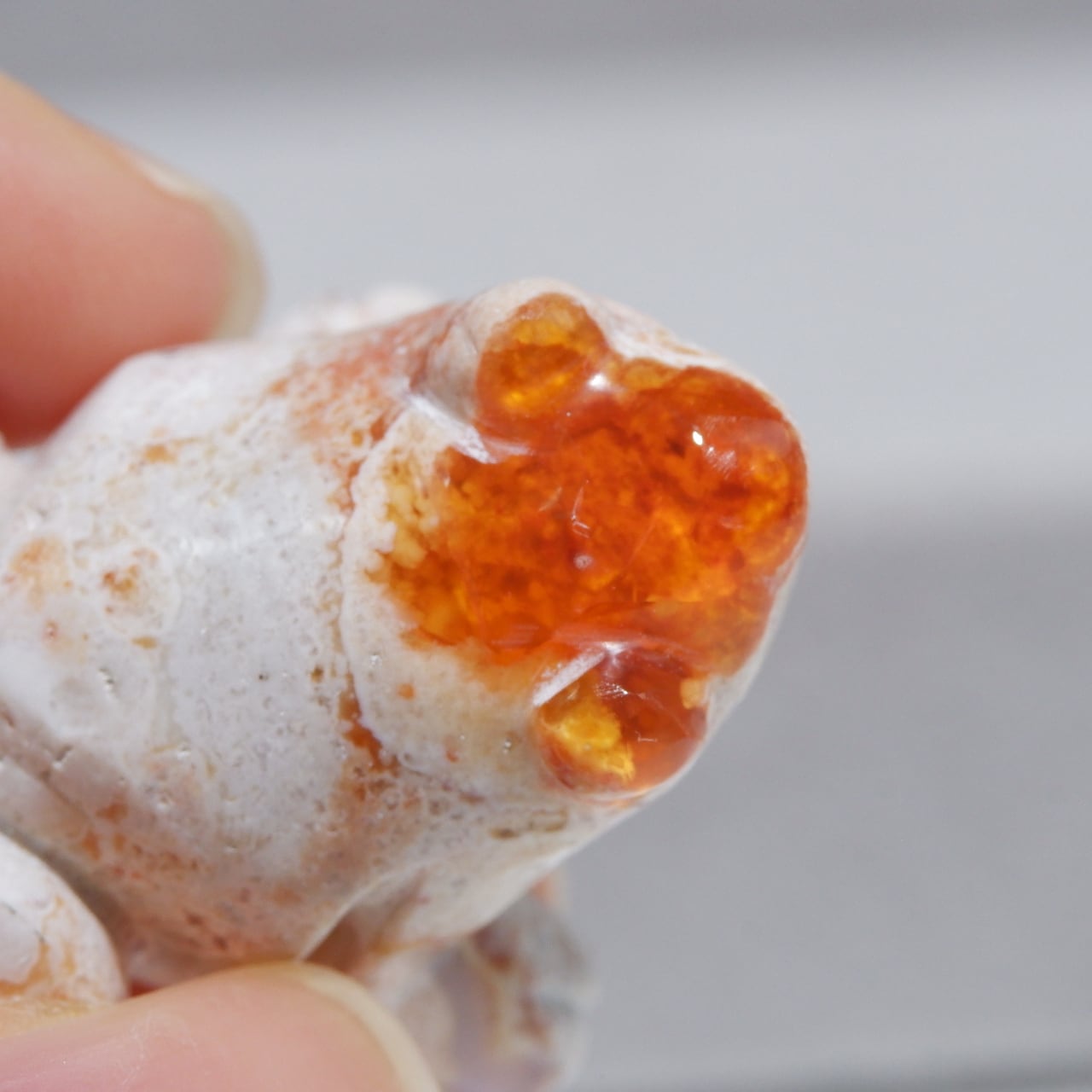 ふっくらとした可愛らしい体つきと、頭に入った鮮やかなオパールがチャームポイントです。