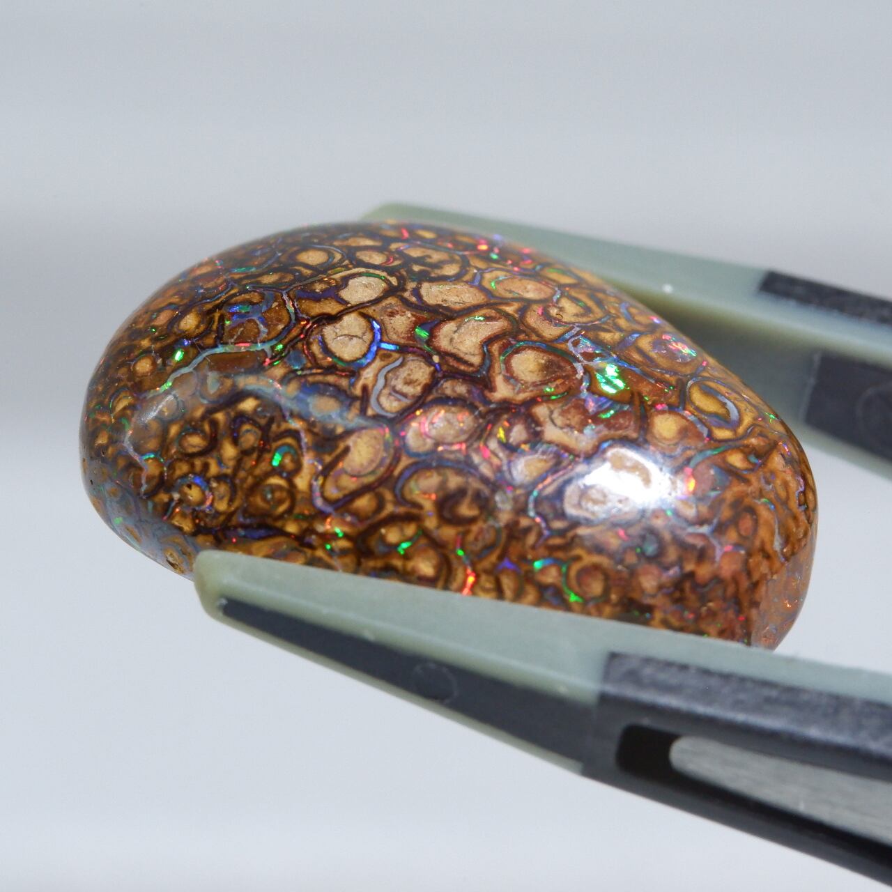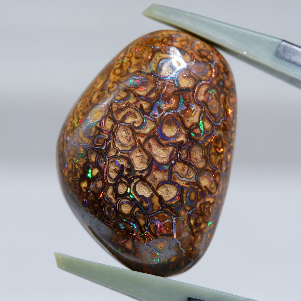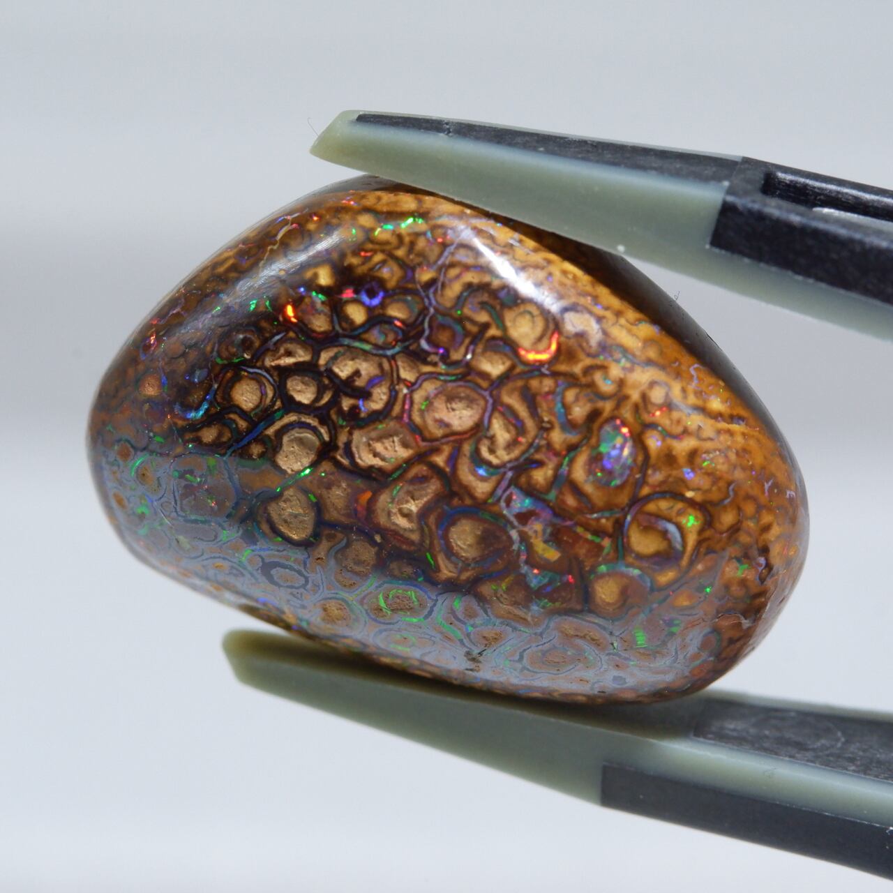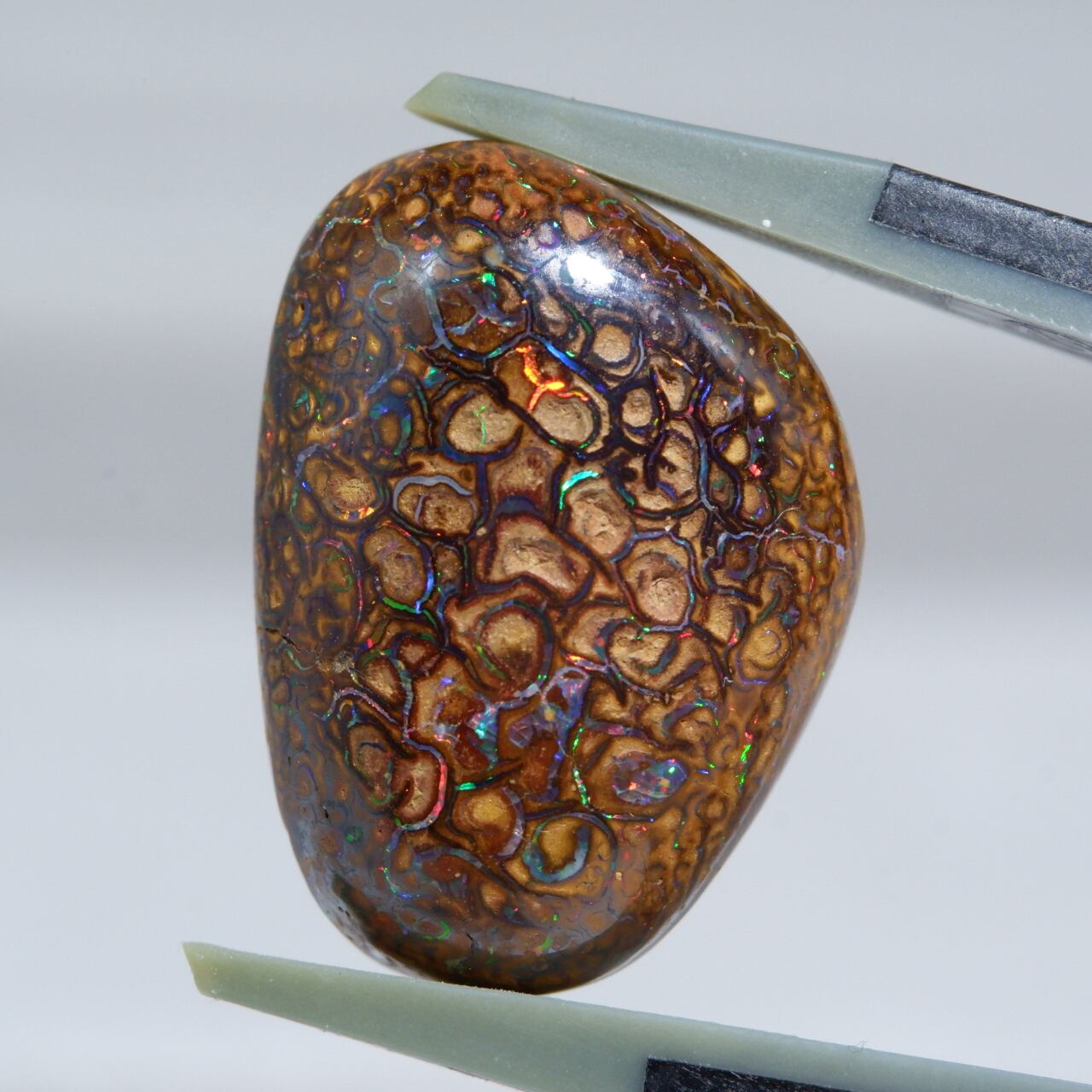 ボルダーオパールの一種で、主に鉄鉱石、砂岩、オパールからなる入り組んだ模様が絵画のようにも見える芸術的なオパールです。