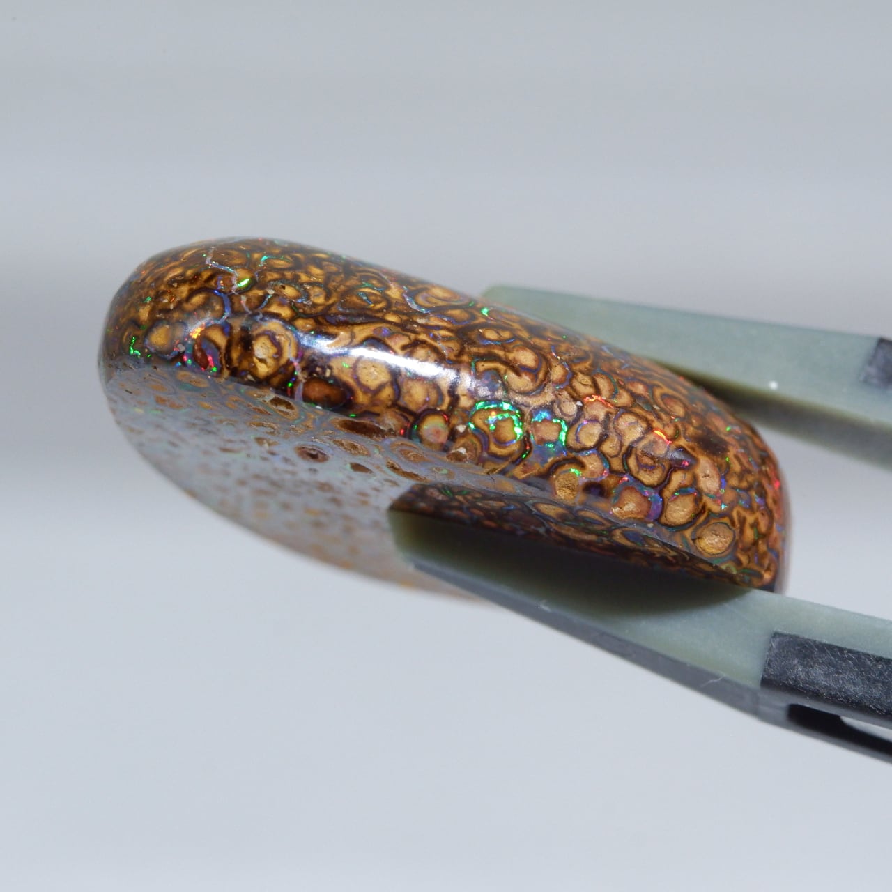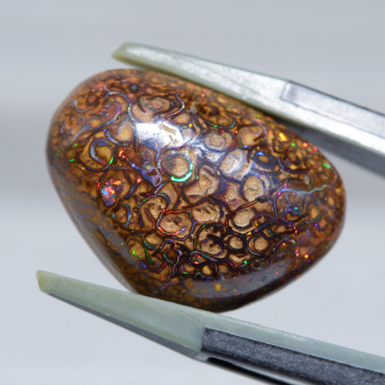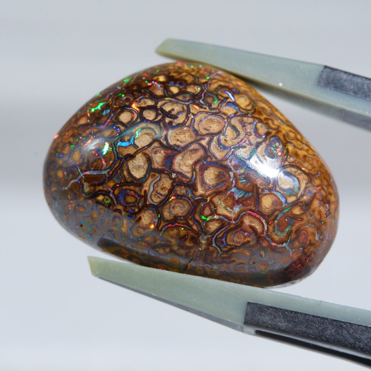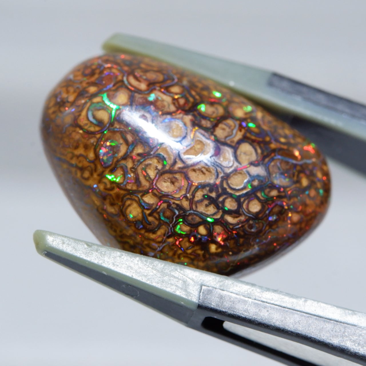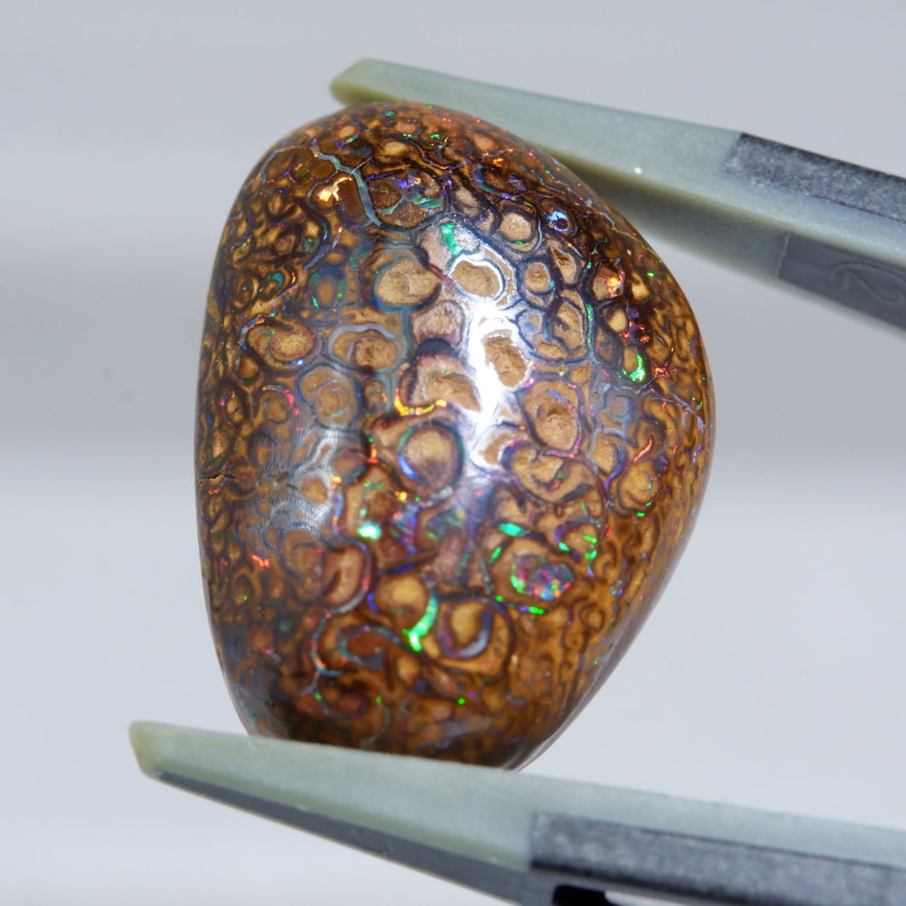 ボルダーオパールの一種で、主に鉄鉱石、砂岩、オパールからなる入り組んだ模様が絵画のようにも見える芸術的なオパールです。