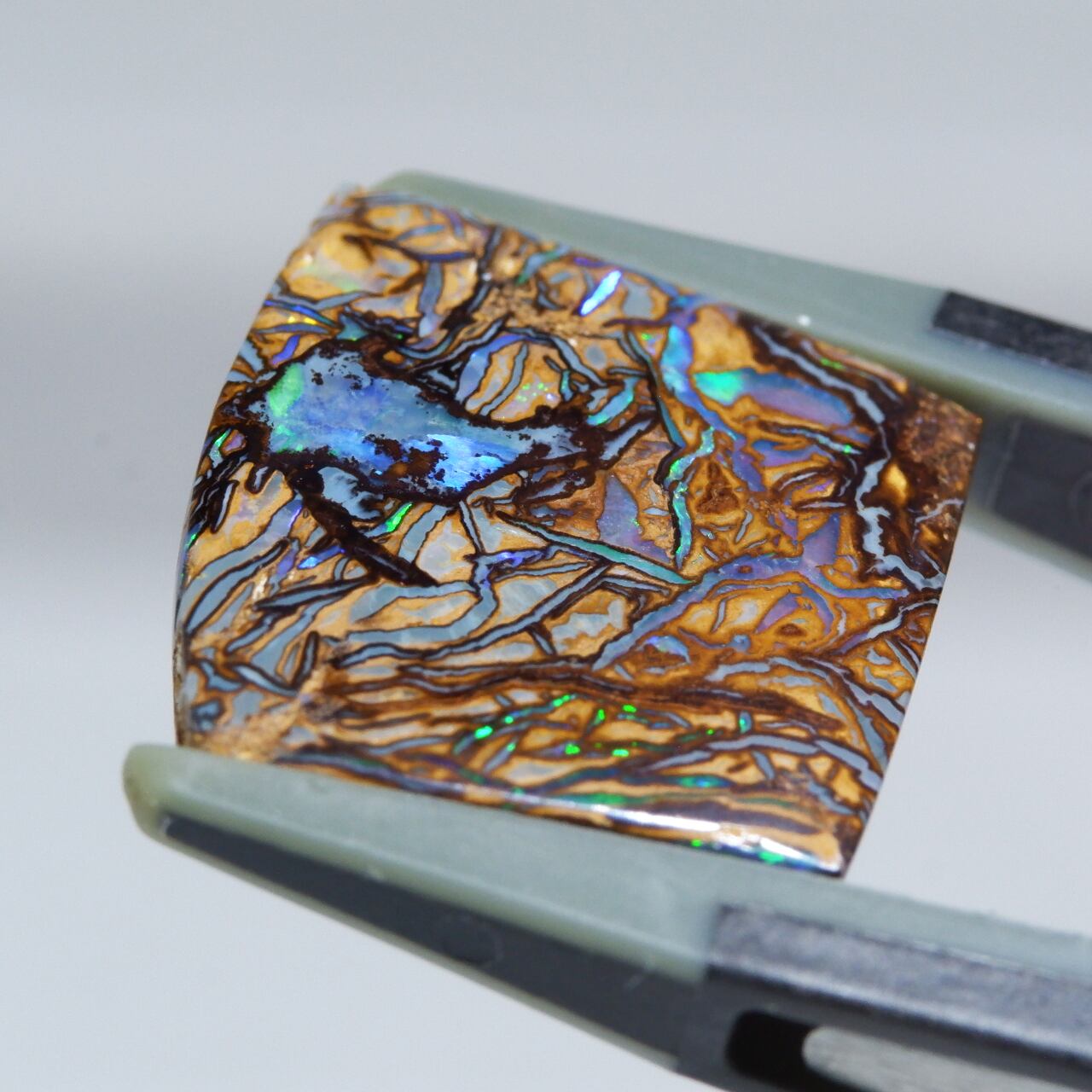 ボルダーオパールの一種で、主に鉄鉱石、砂岩、オパールからなる入り組んだ模様が絵画のようにも見える芸術的なオパールです。
