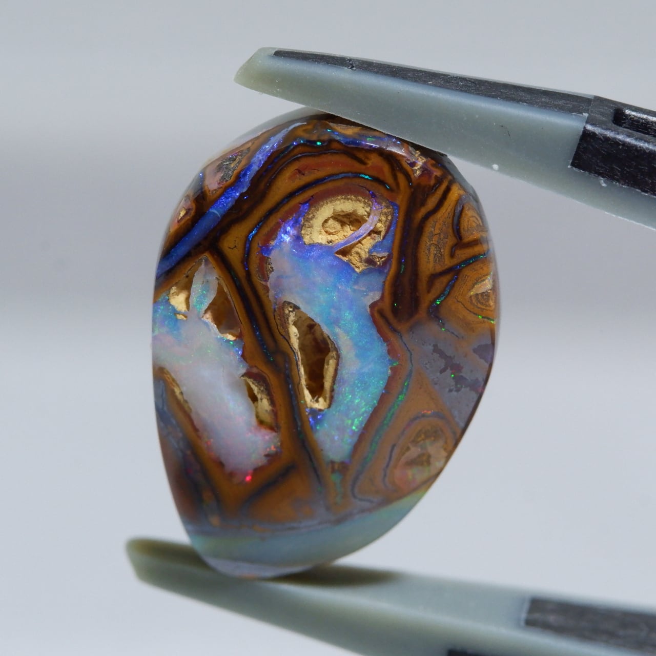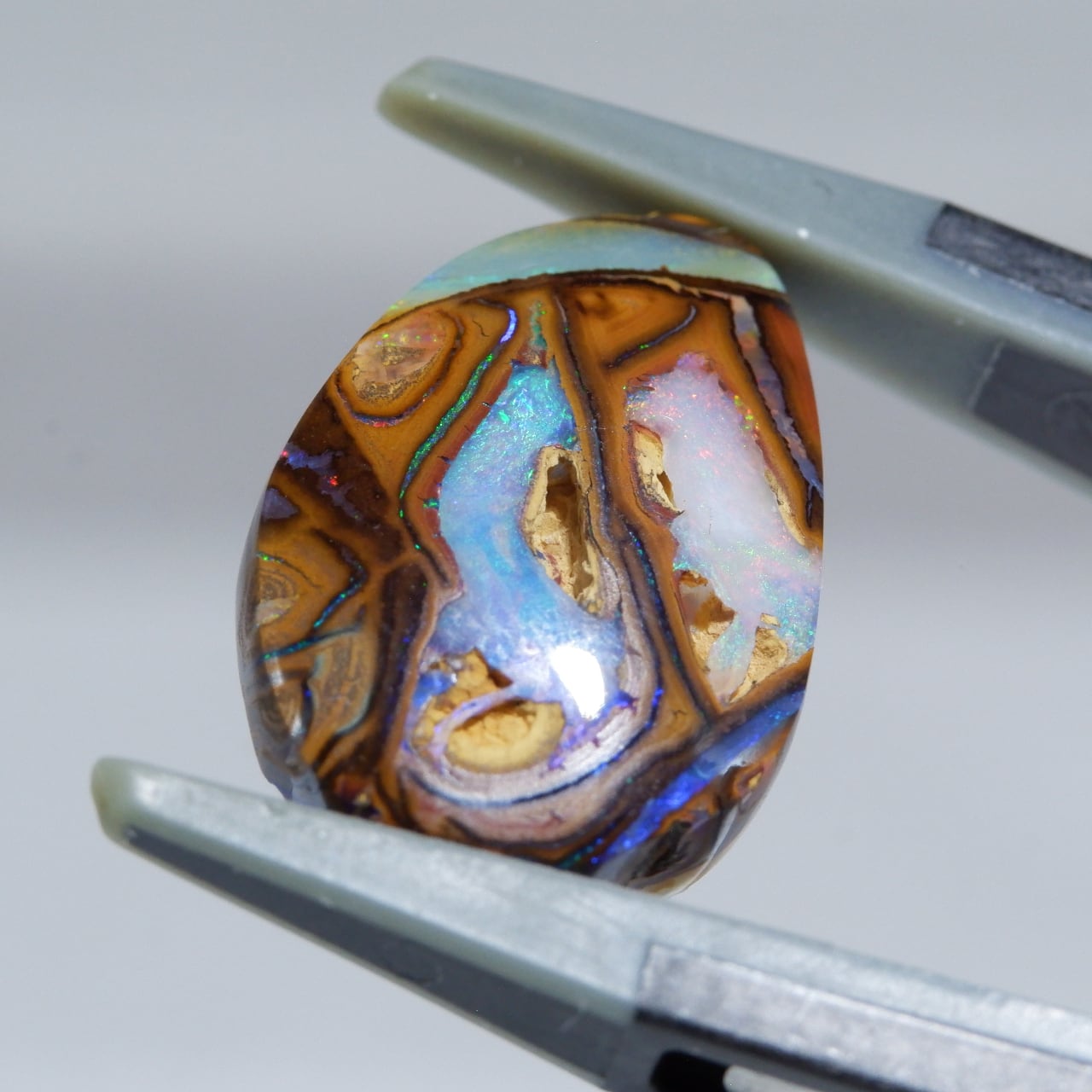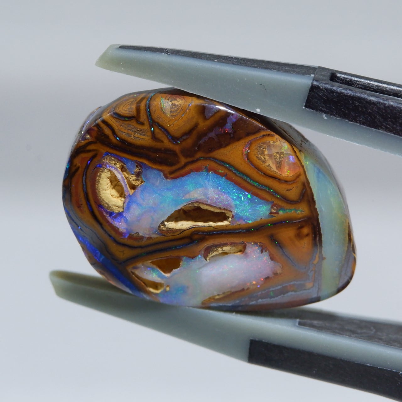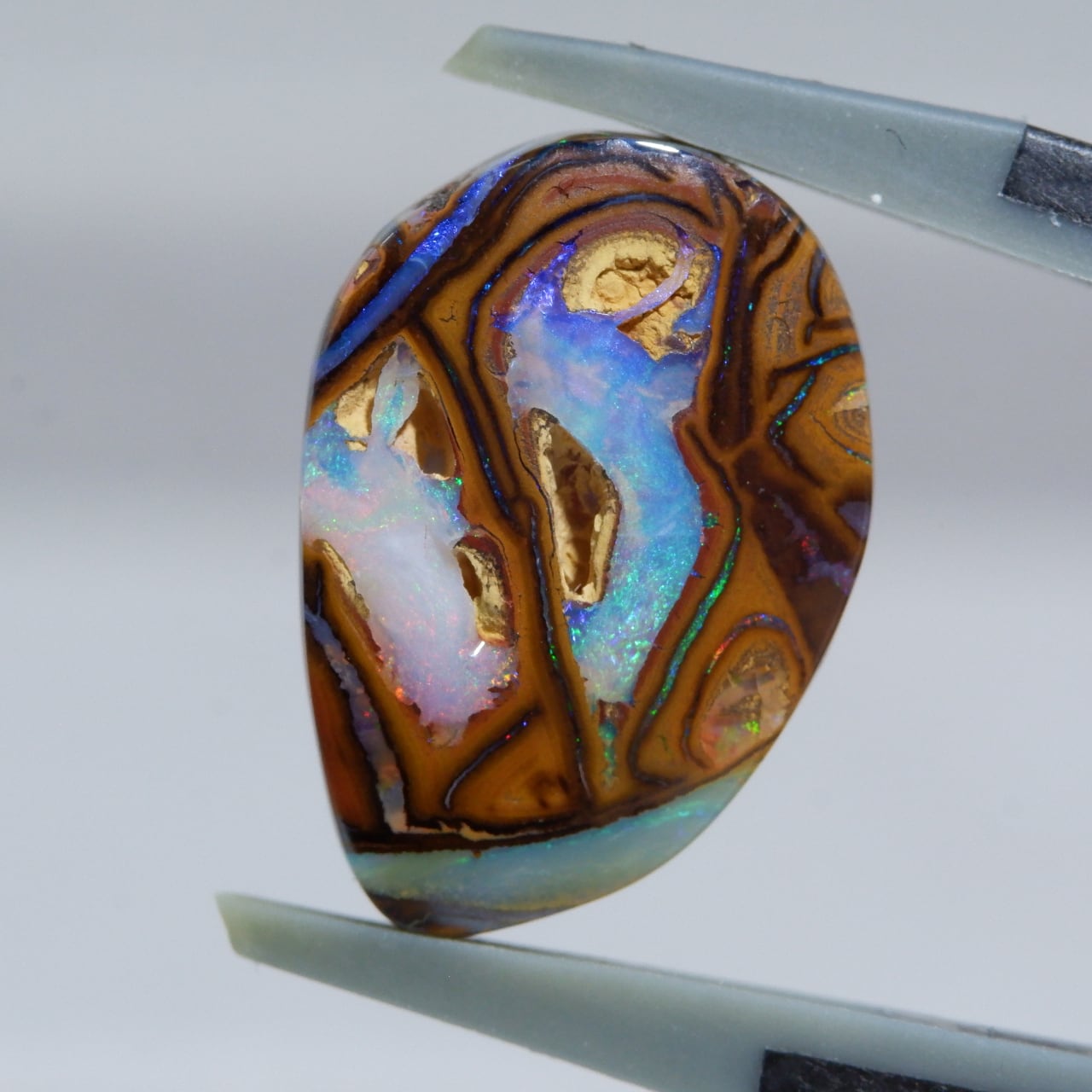 ボルダーオパールの一種で、主に鉄鉱石、砂岩、オパールからなる入り組んだ模様が絵画のようにも見える芸術的なオパールです。