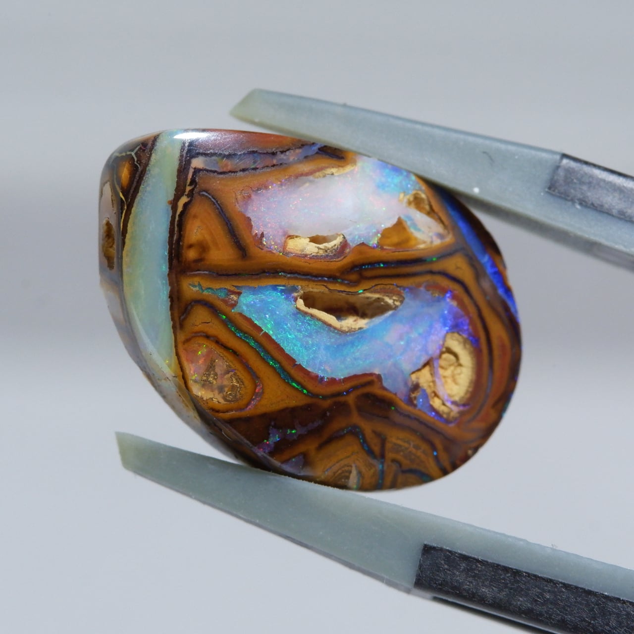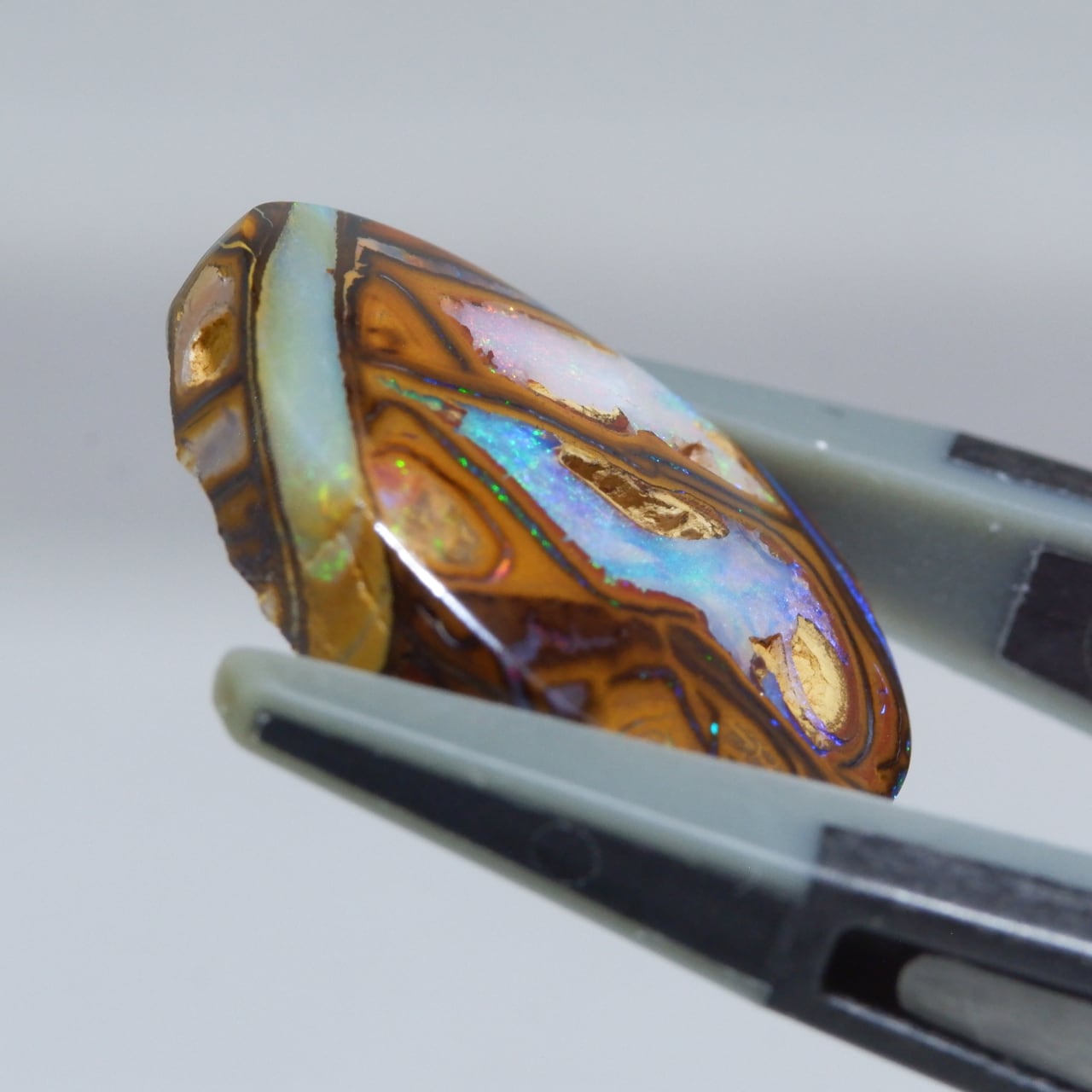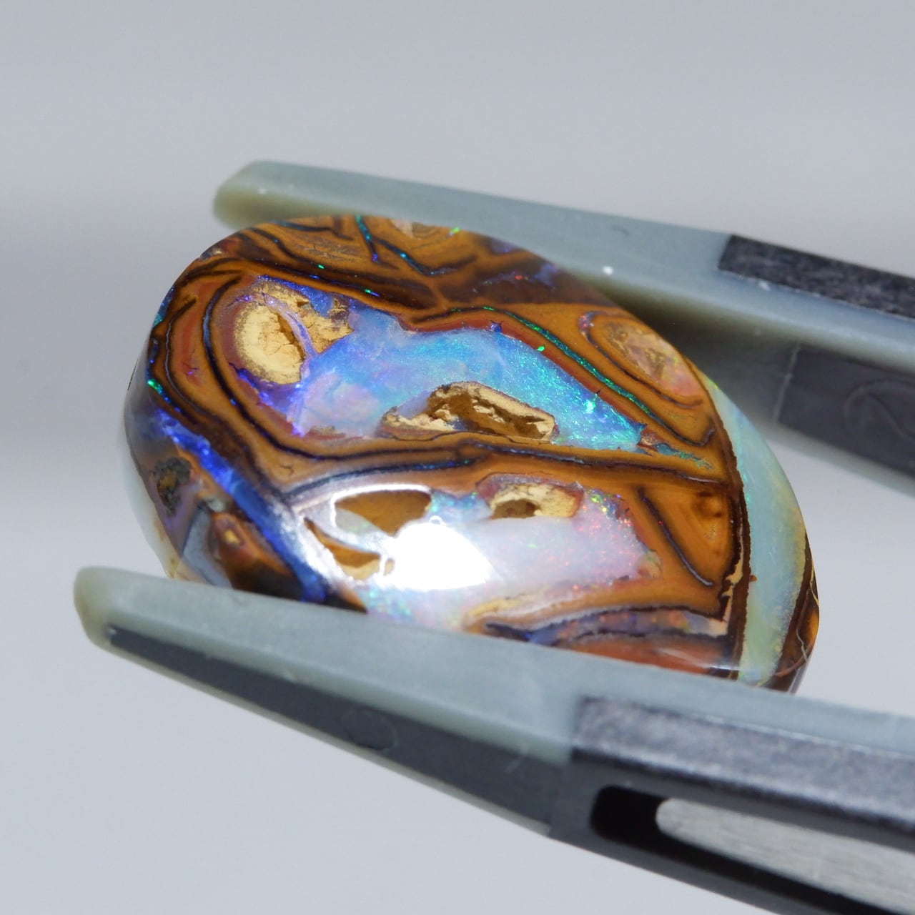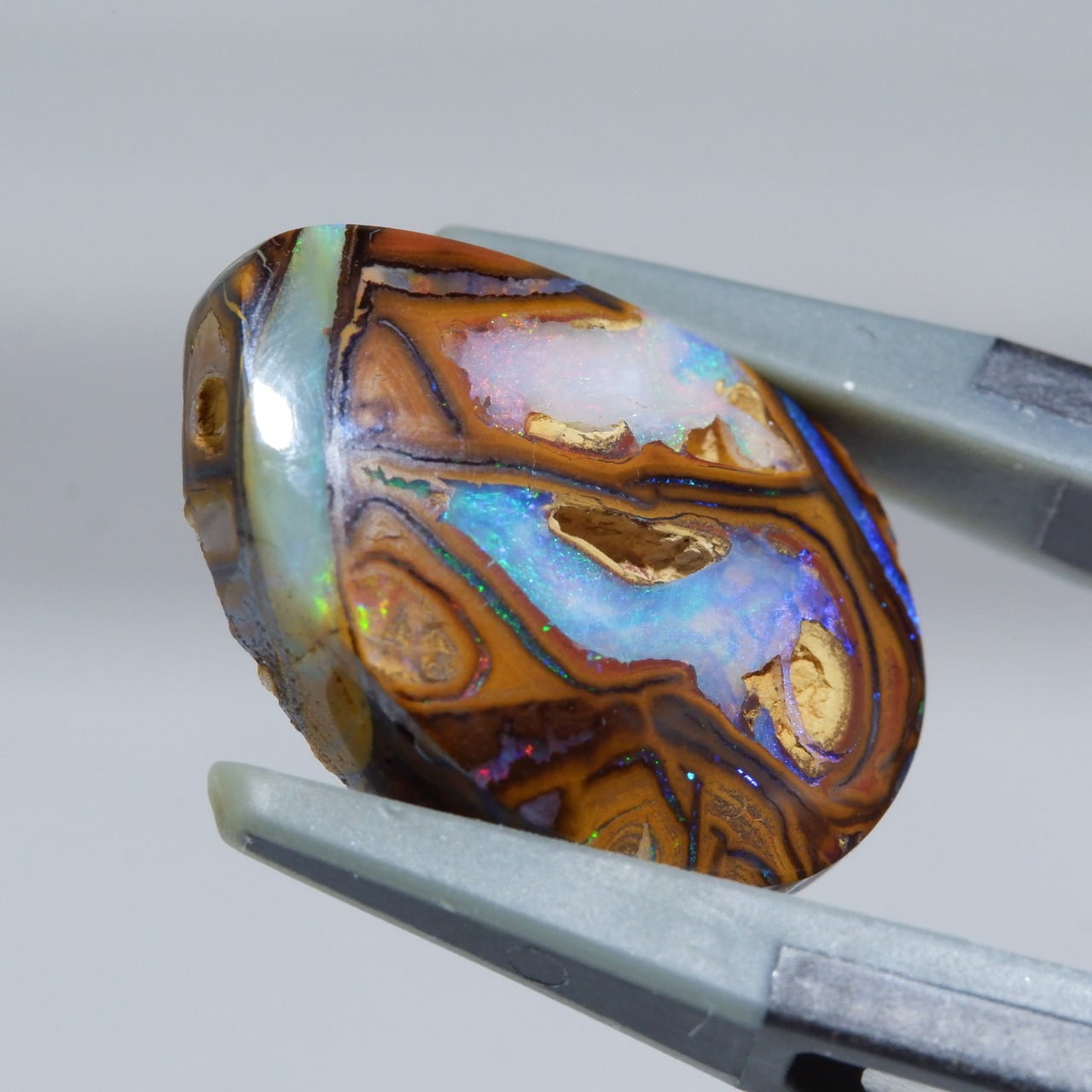ボルダーオパールの一種で、主に鉄鉱石、砂岩、オパールからなる入り組んだ模様が絵画のようにも見える芸術的なオパールです。