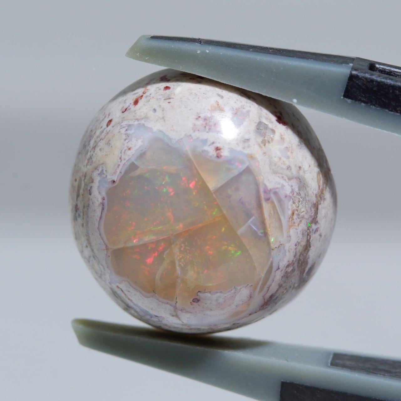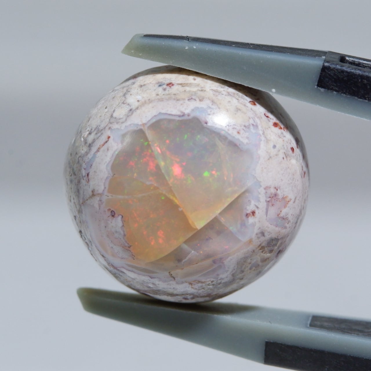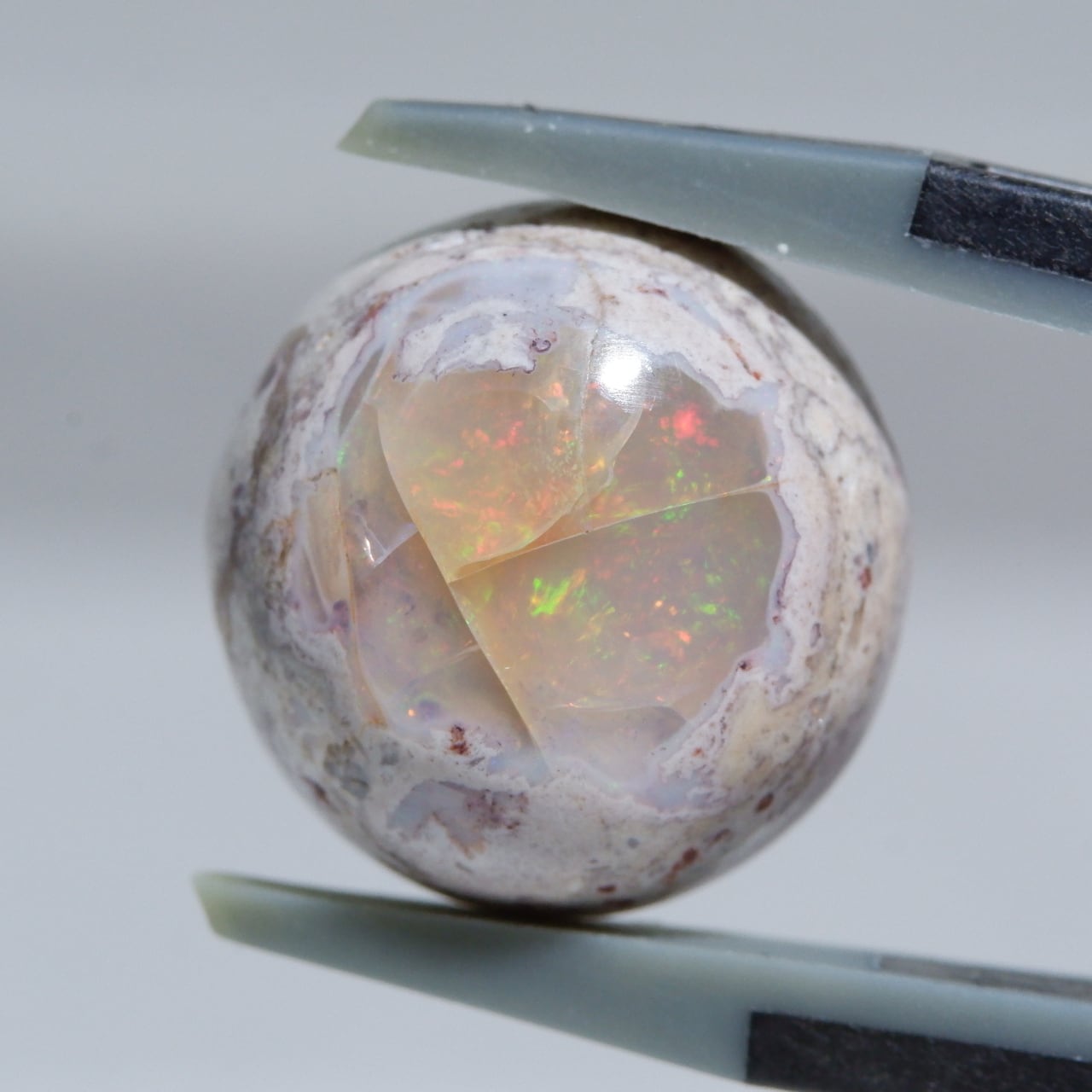周囲の母岩とともに研磨されたオパールで、恐竜の卵のようにも見える可愛らしい印象を与えるものが多くあります。