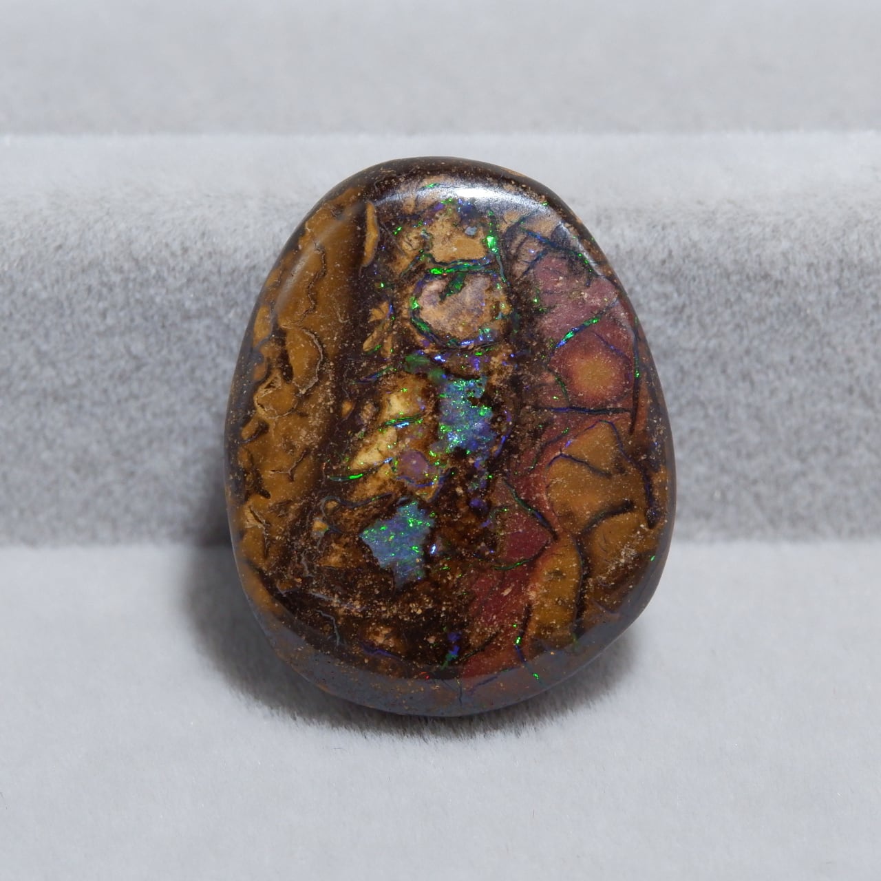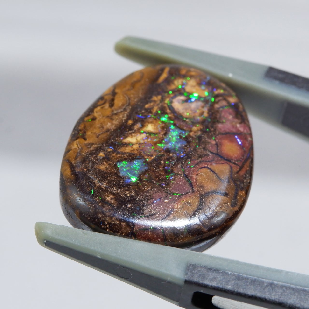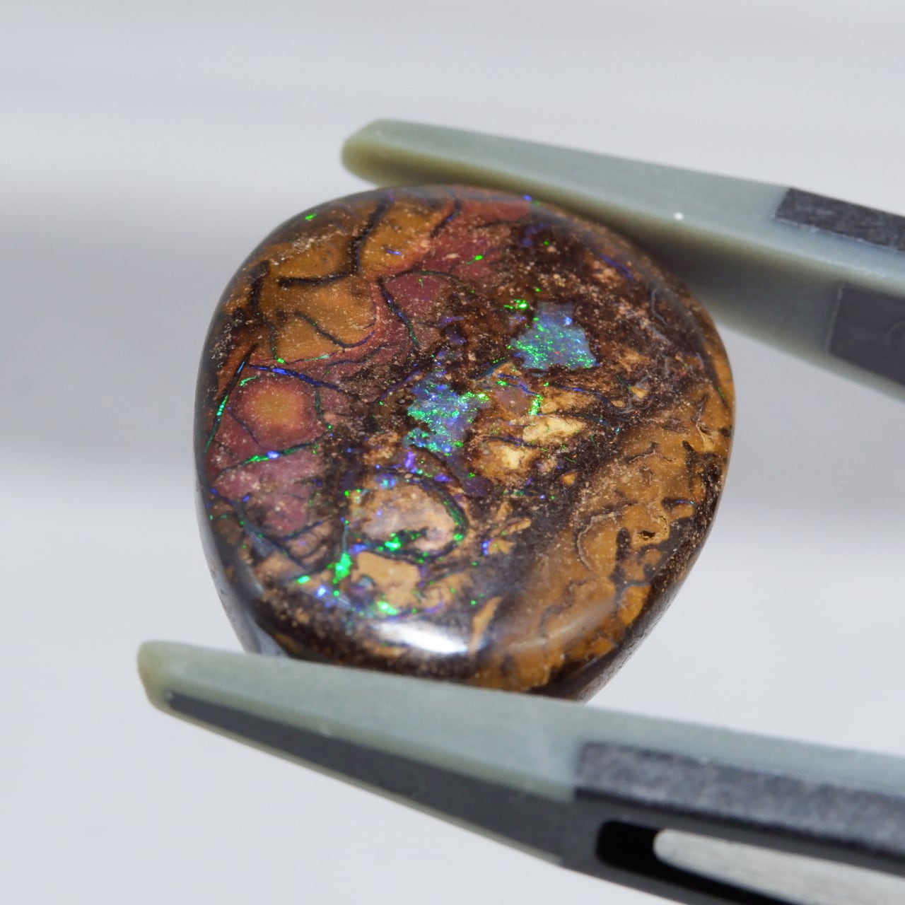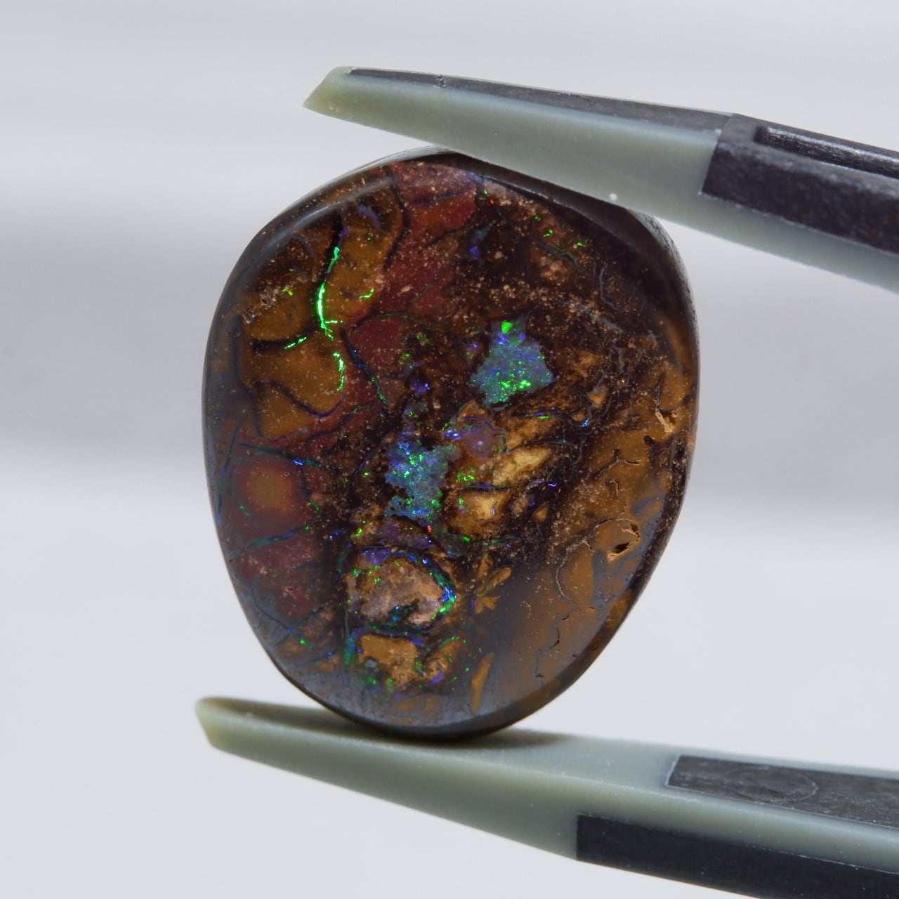 ボルダーオパールの一種で、主に鉄鉱石、砂岩、オパールからなる入り組んだ模様が絵画のようにも見える芸術的なオパールです。