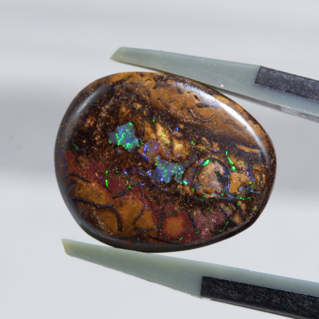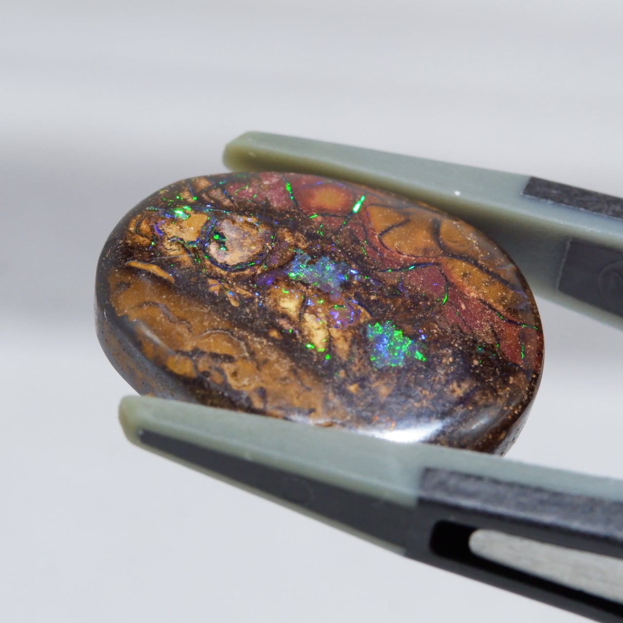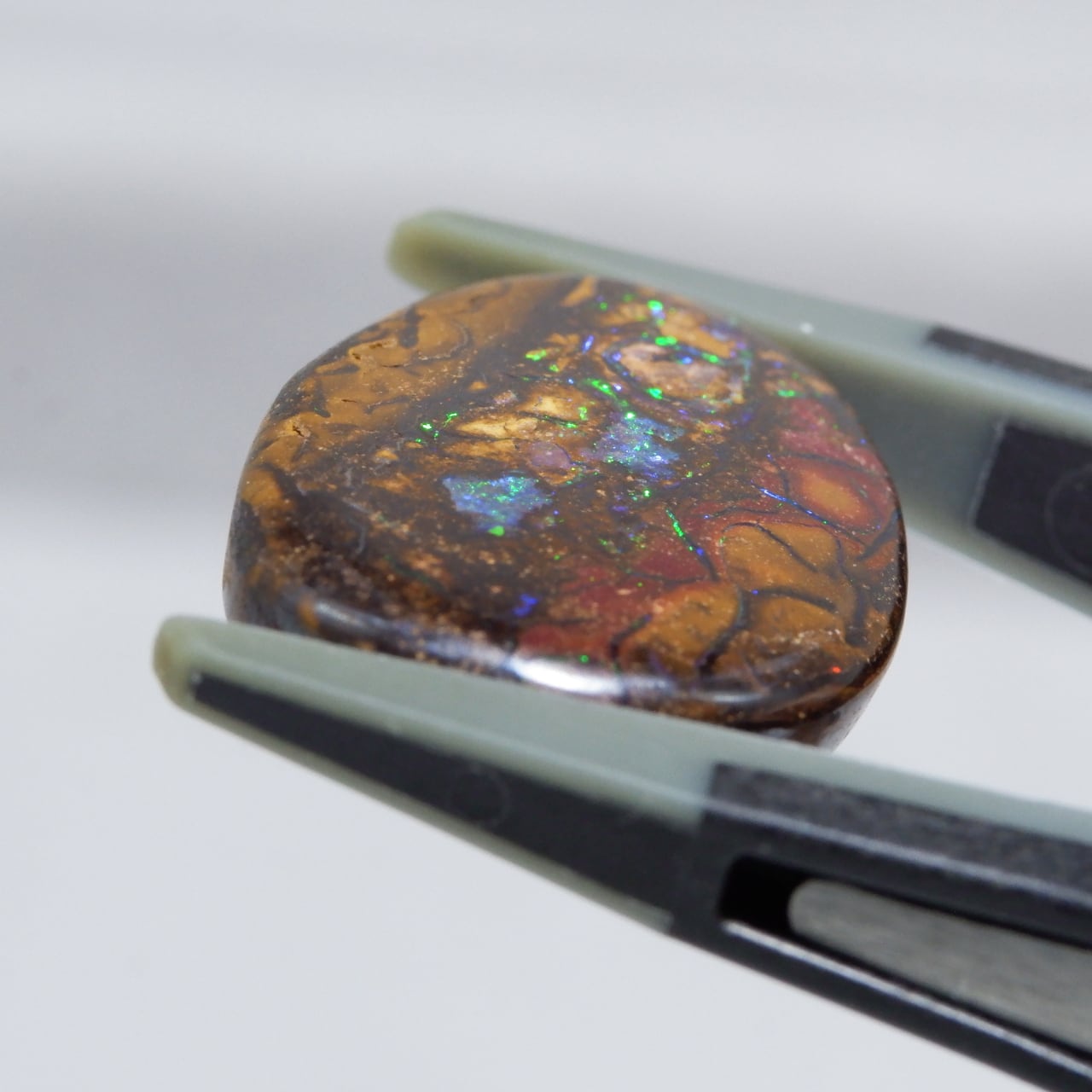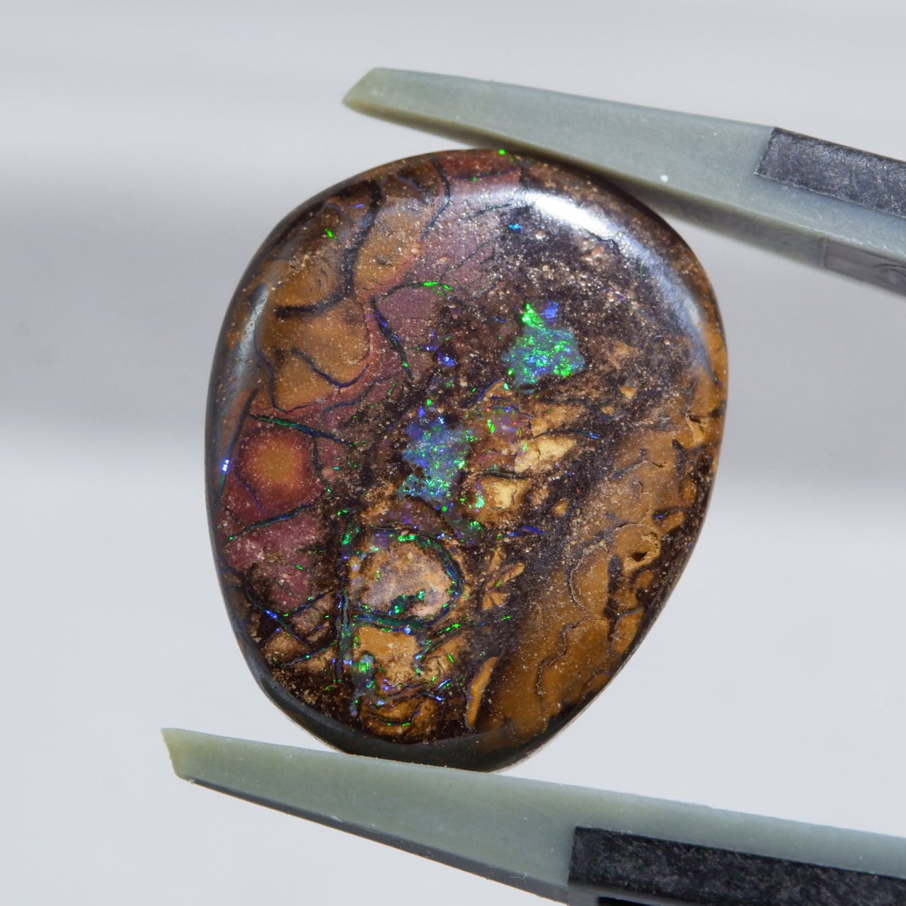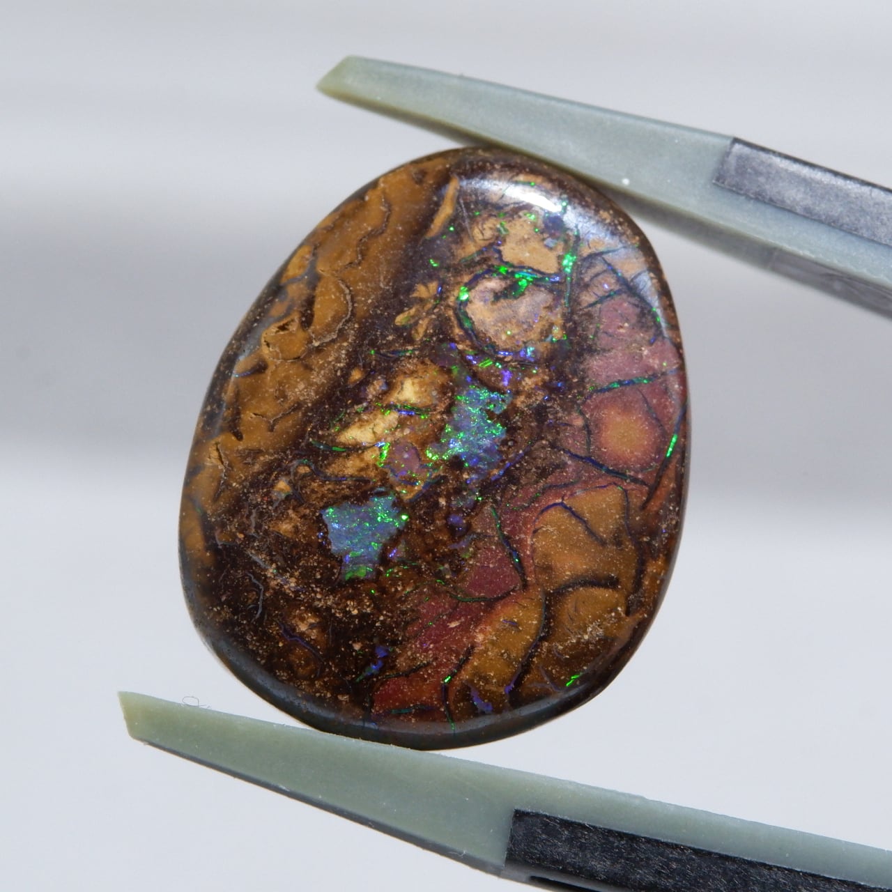 ボルダーオパールの一種で、主に鉄鉱石、砂岩、オパールからなる入り組んだ模様が絵画のようにも見える芸術的なオパールです。