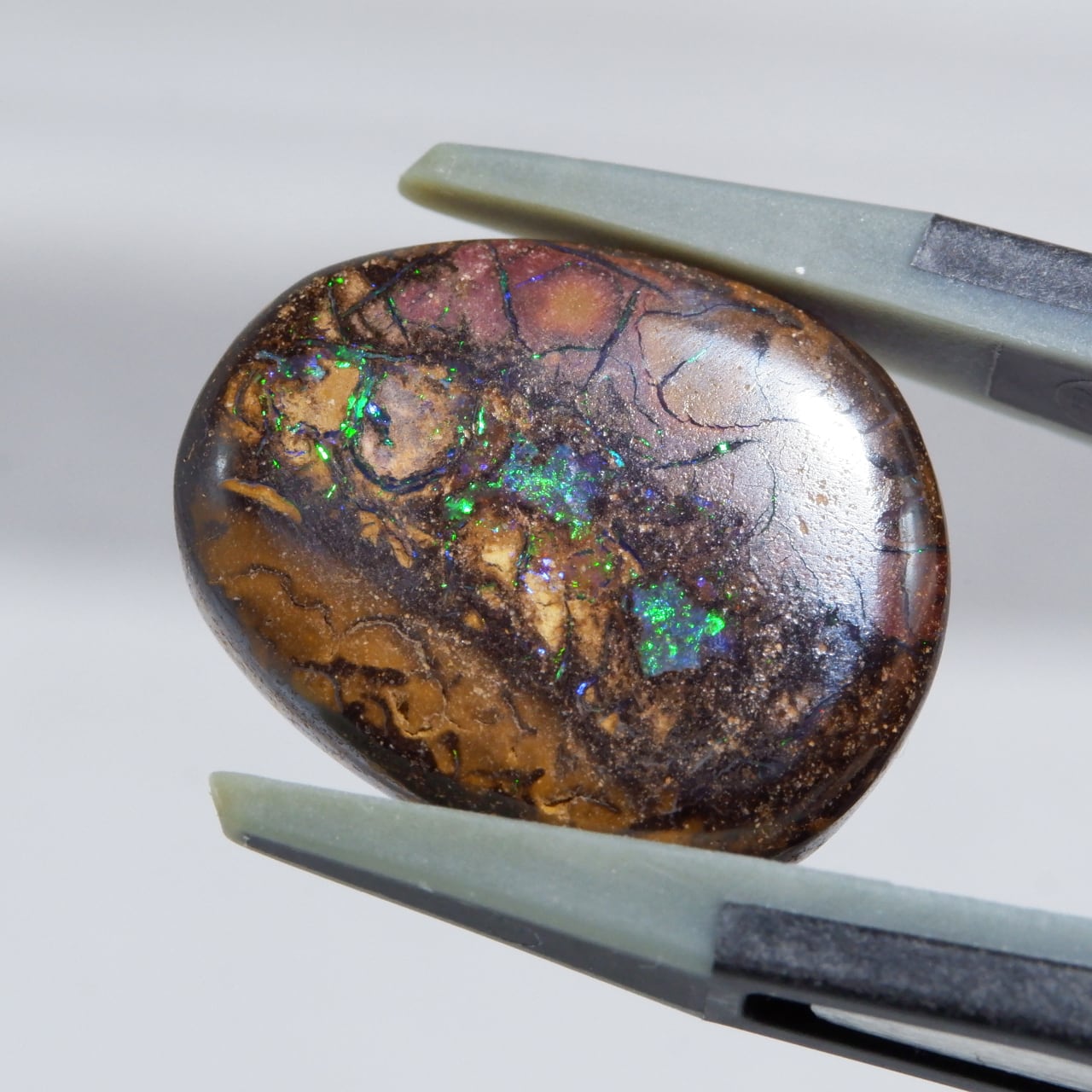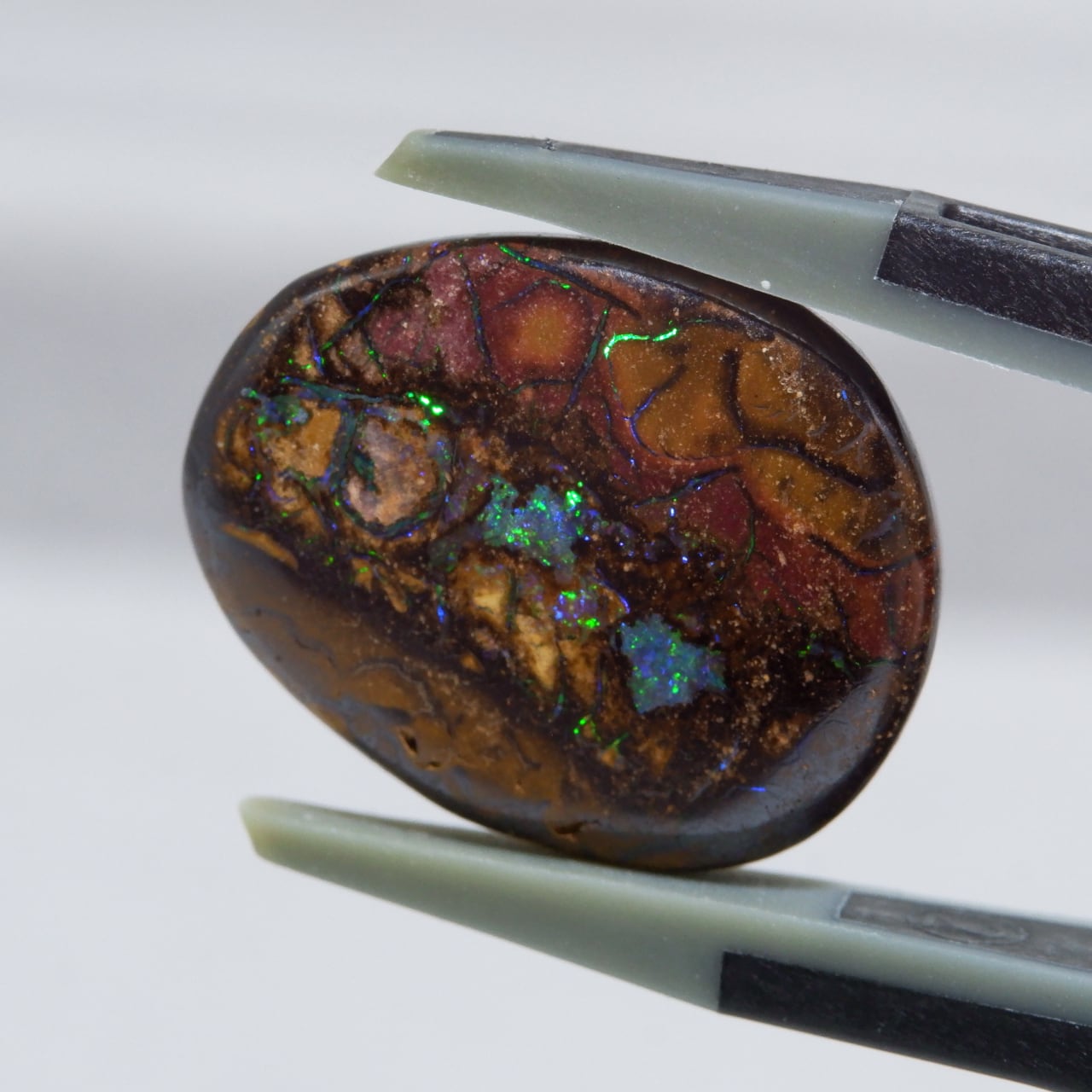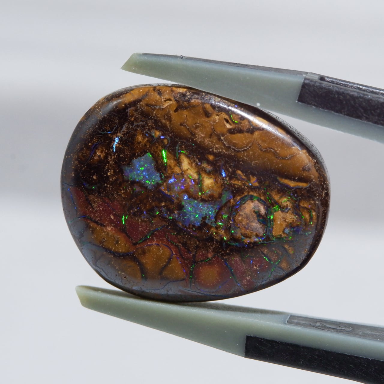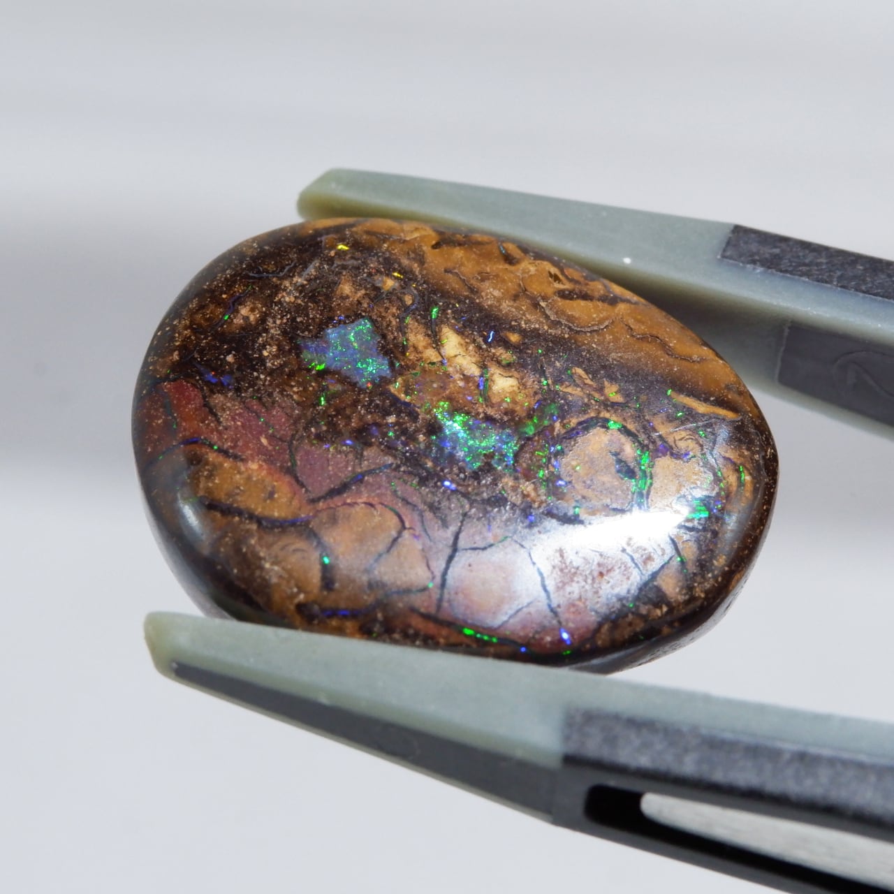 ボルダーオパールの一種で、主に鉄鉱石、砂岩、オパールからなる入り組んだ模様が絵画のようにも見える芸術的なオパールです。