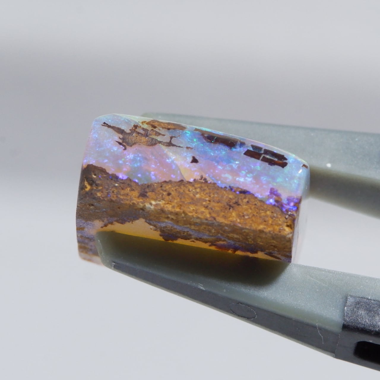 遊色をたっぷりとたくわえたウッドオパールです。