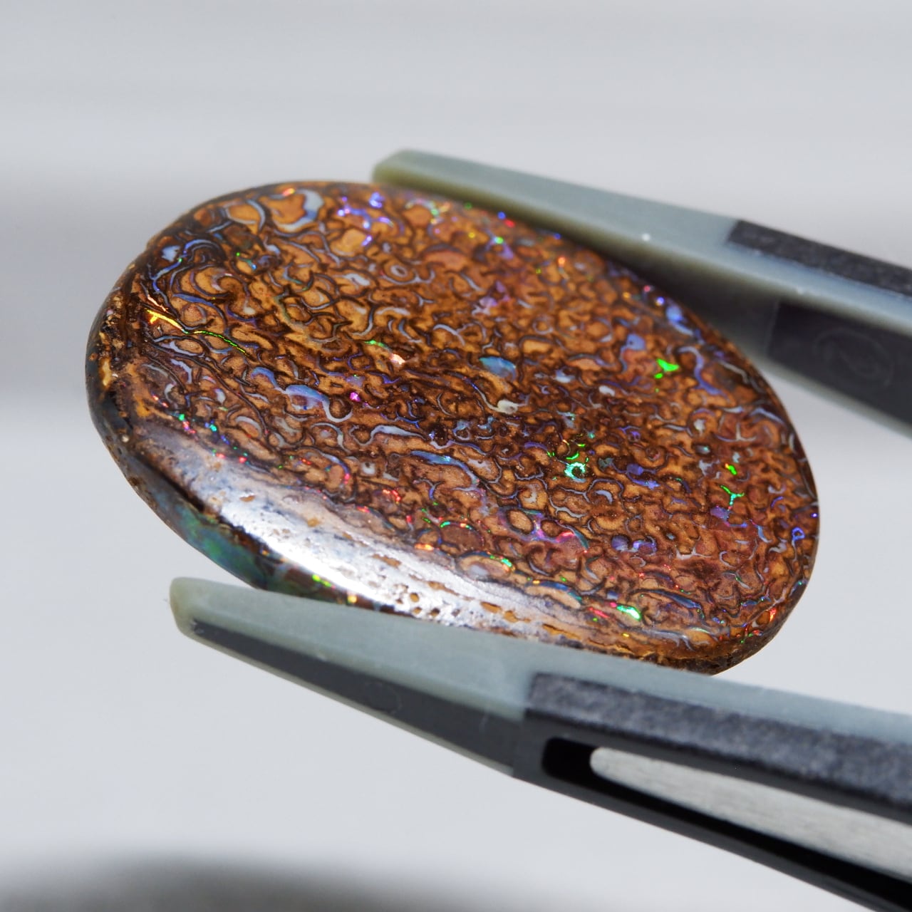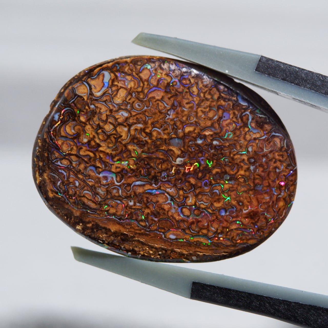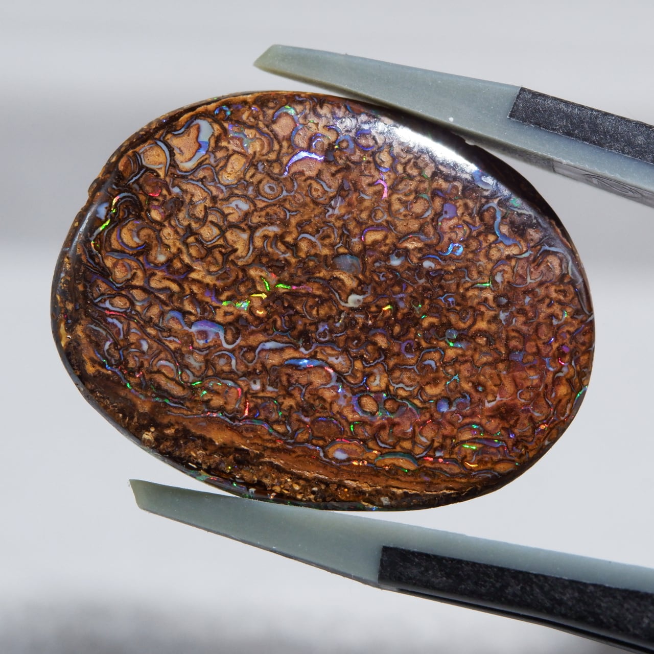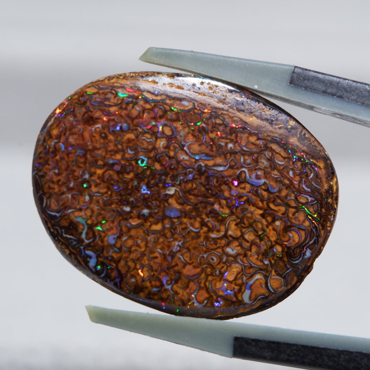 ボルダーオパールの一種で、主に鉄鉱石、砂岩、オパールからなる入り組んだ模様が絵画のようにも見える芸術的なオパールです。