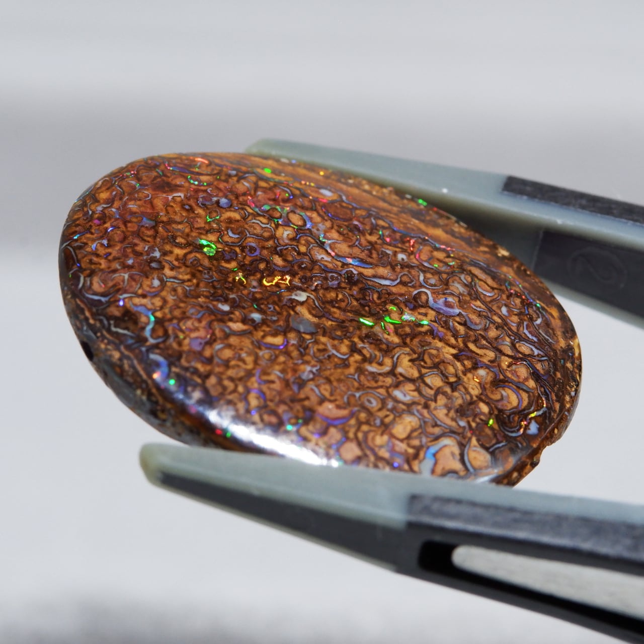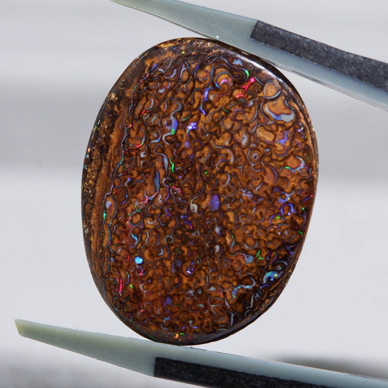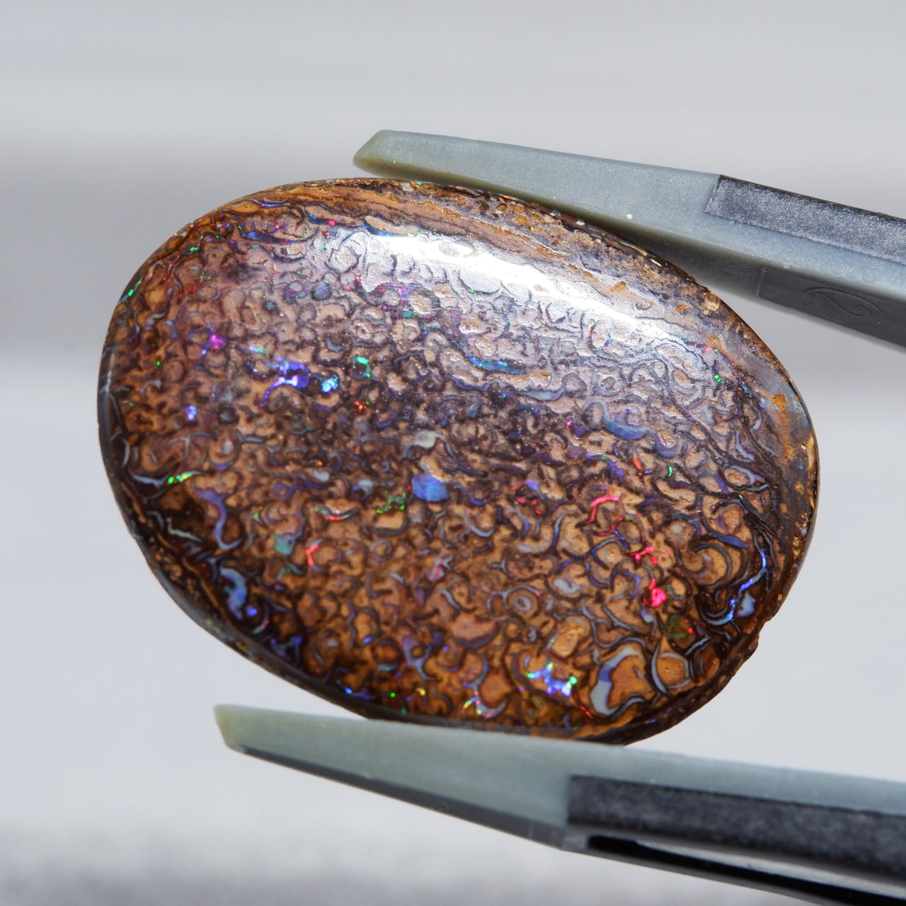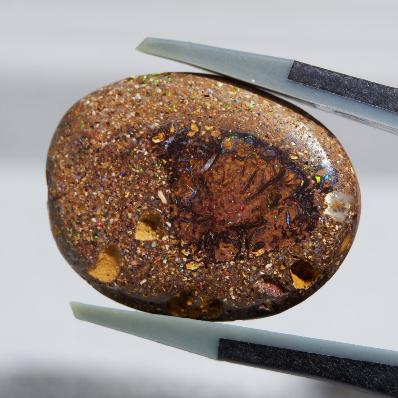 ボルダーオパールの一種で、主に鉄鉱石、砂岩、オパールからなる入り組んだ模様が絵画のようにも見える芸術的なオパールです。