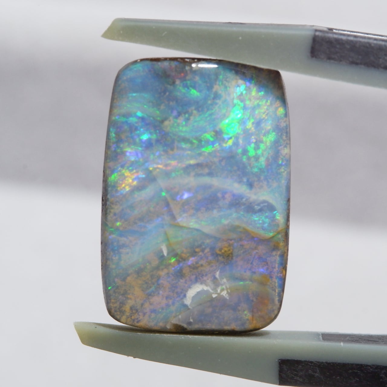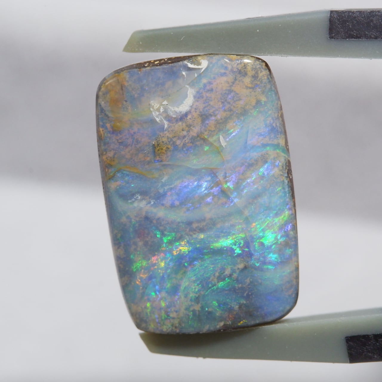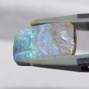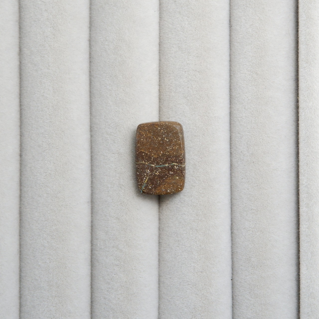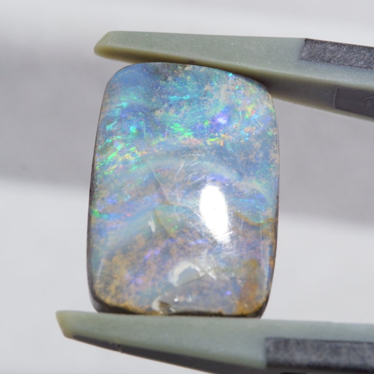 母岩である鉄鉱石、砂岩とともに研磨されたオパールです。