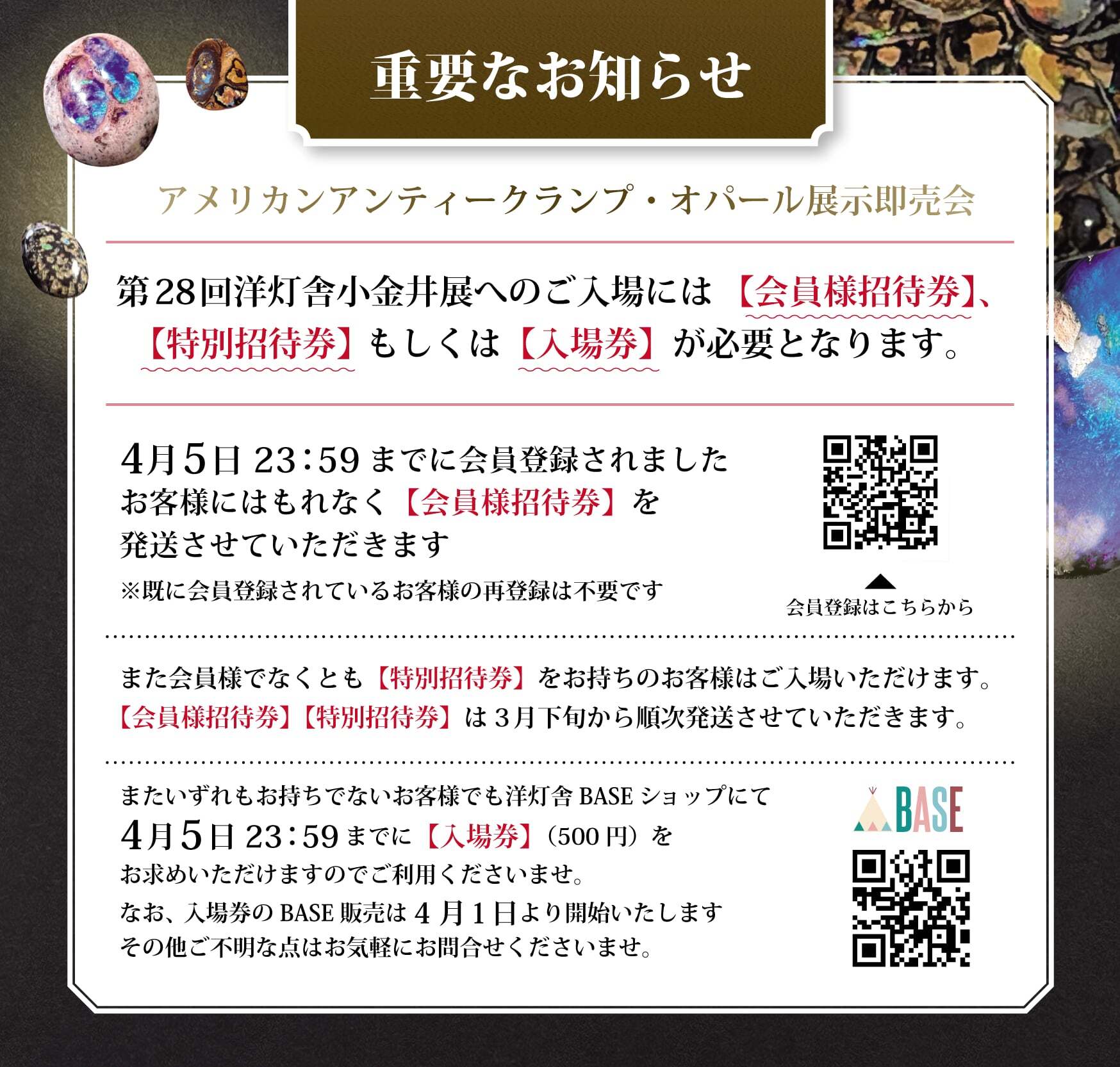 アンティークとオパールが並ぶ特別展示会への入場チケットです。