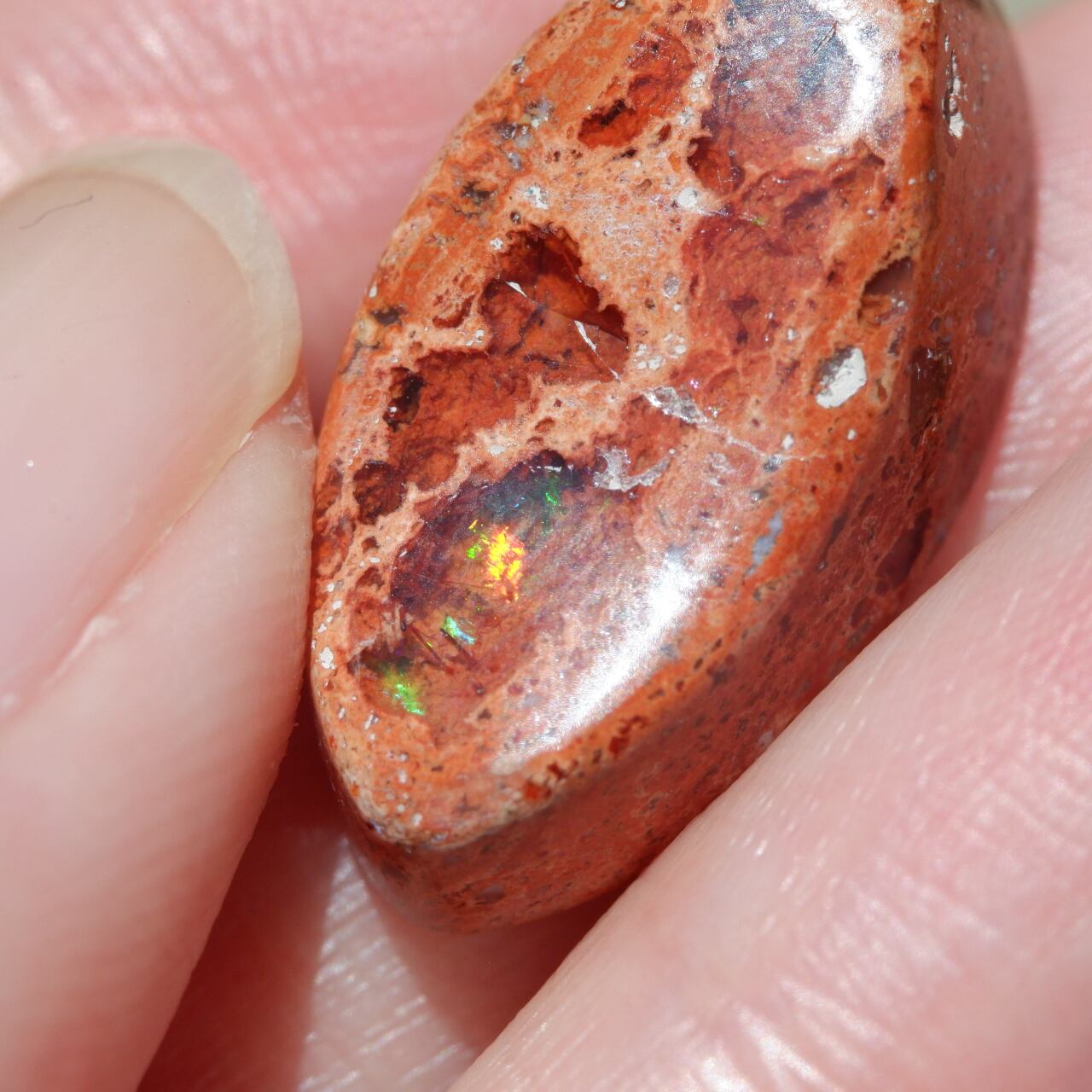 周囲の母岩とともに研磨されたオパールで、恐竜の卵のようにも見える可愛らしい印象を与えるものが多くあります。